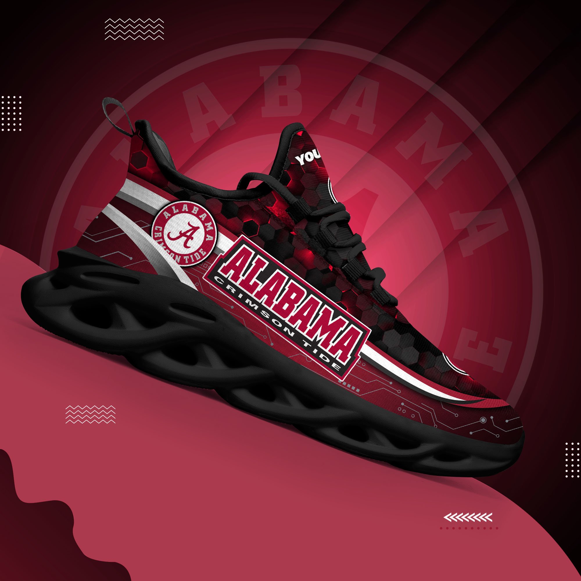 Alabama Crimson Tide Black Clunky Sneakers Custom Name, Max Soul Shoes, Sport Gifts