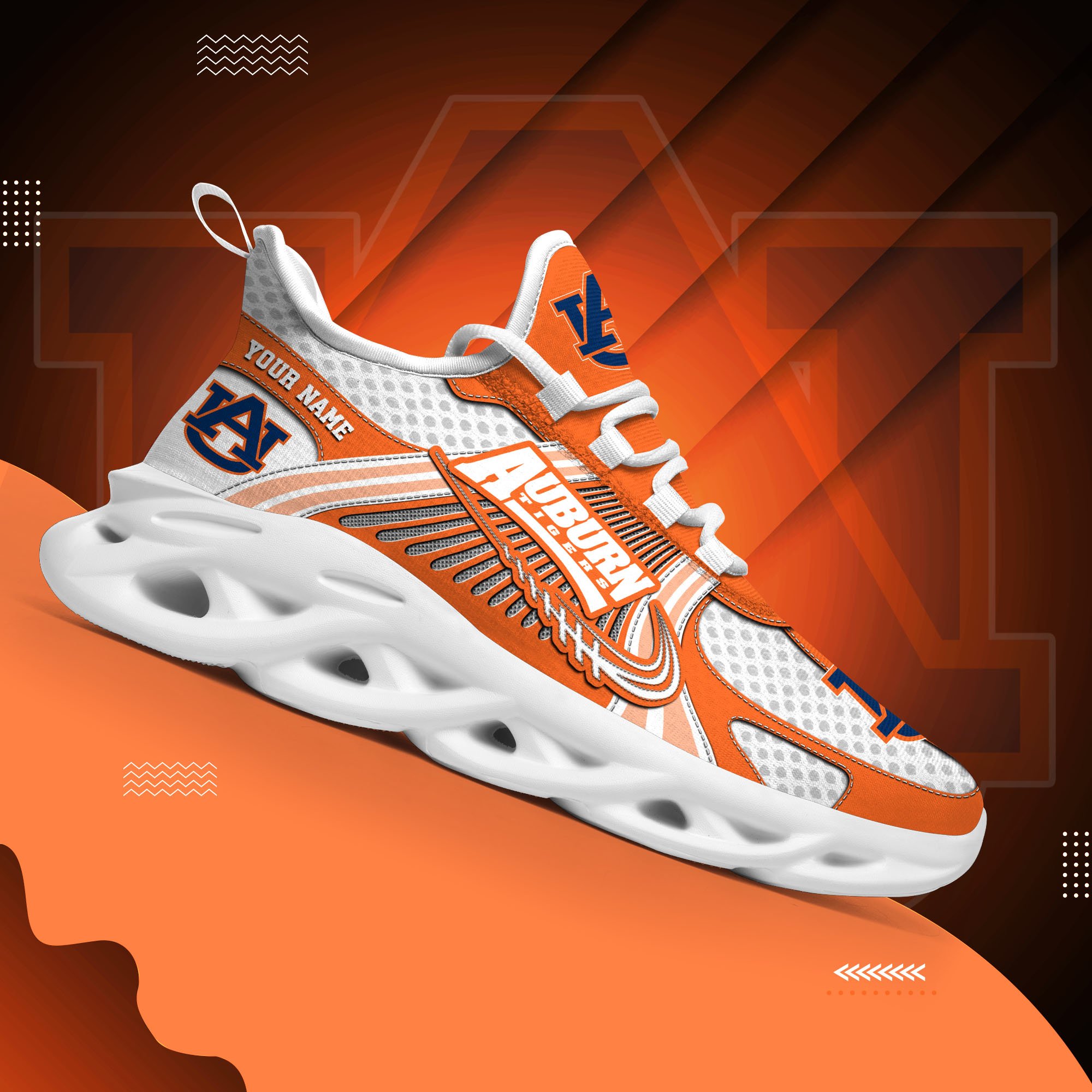 Auburn Tigers Clunky Sneakers Custom Your Name, Sport Sneakers, Sport Gifts For Fan, Gifts For Him
