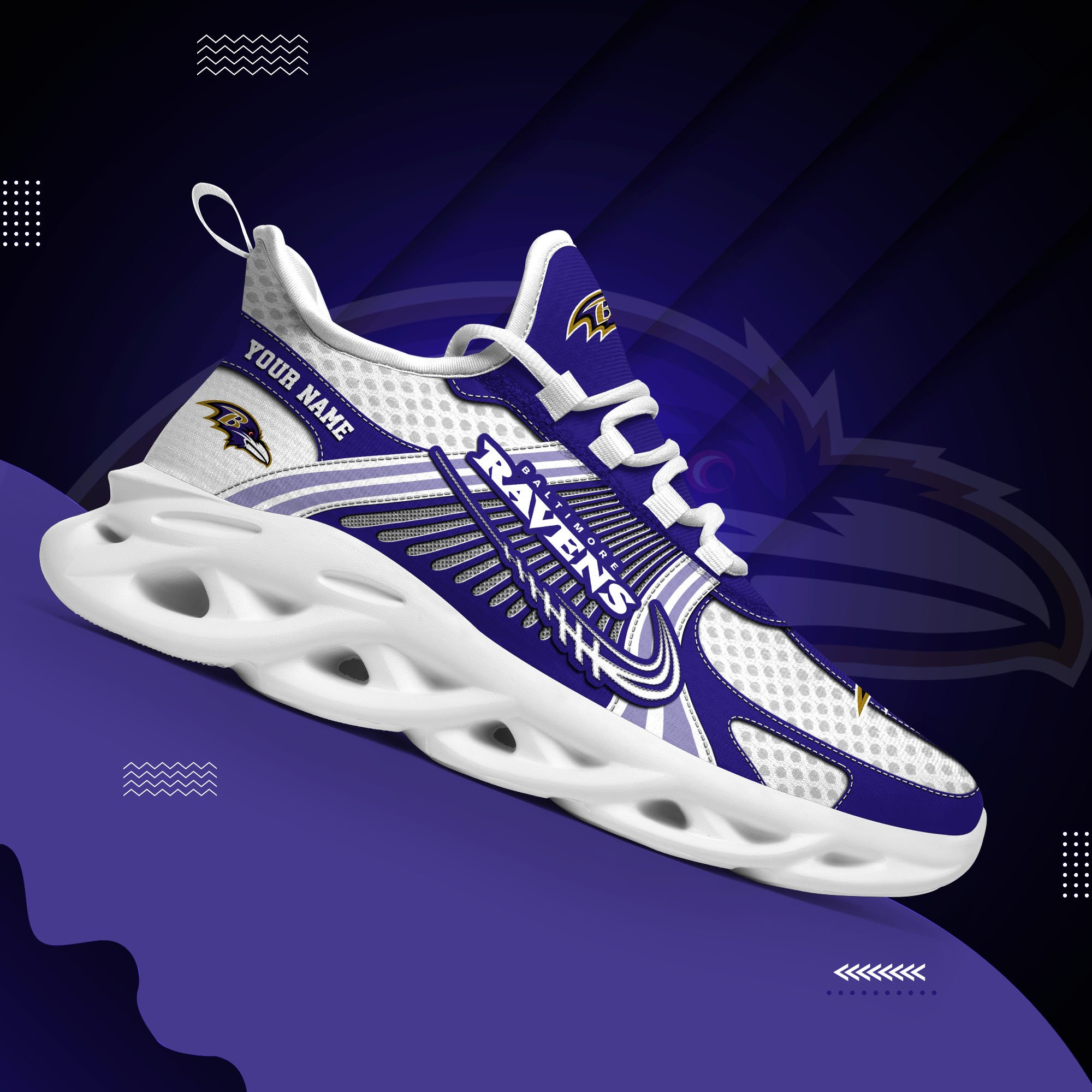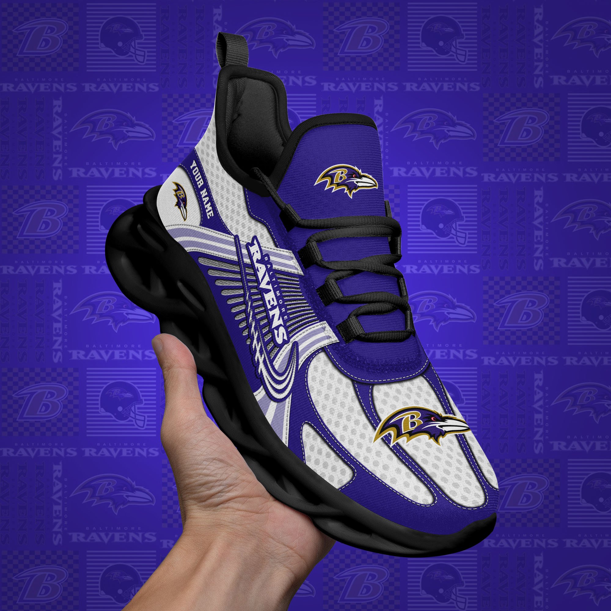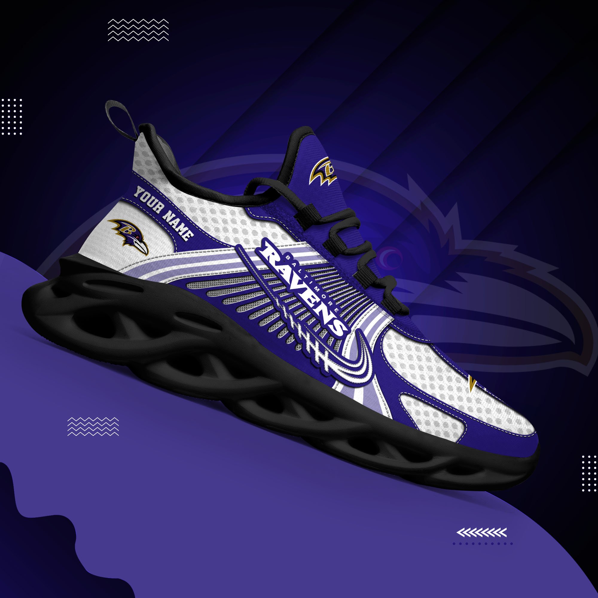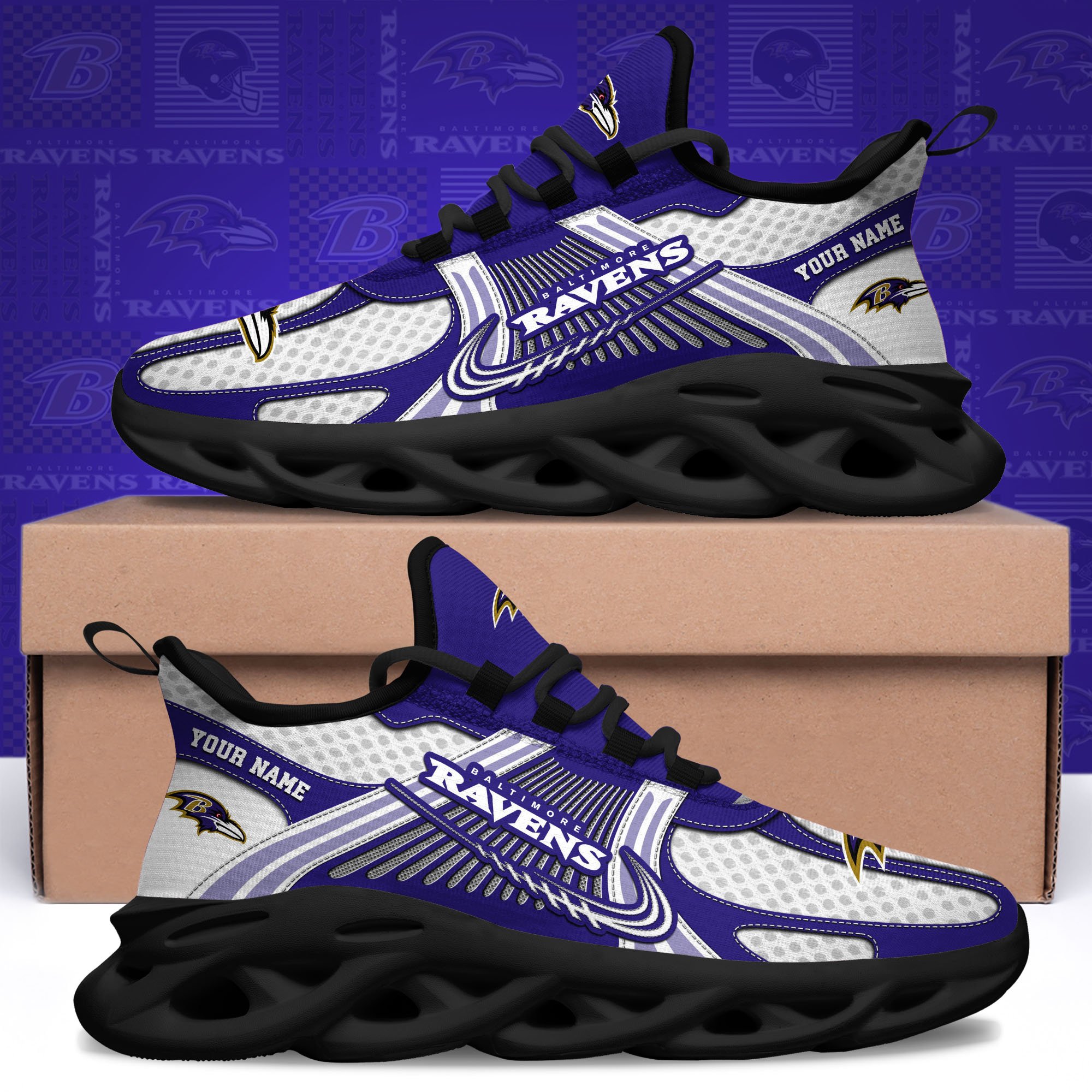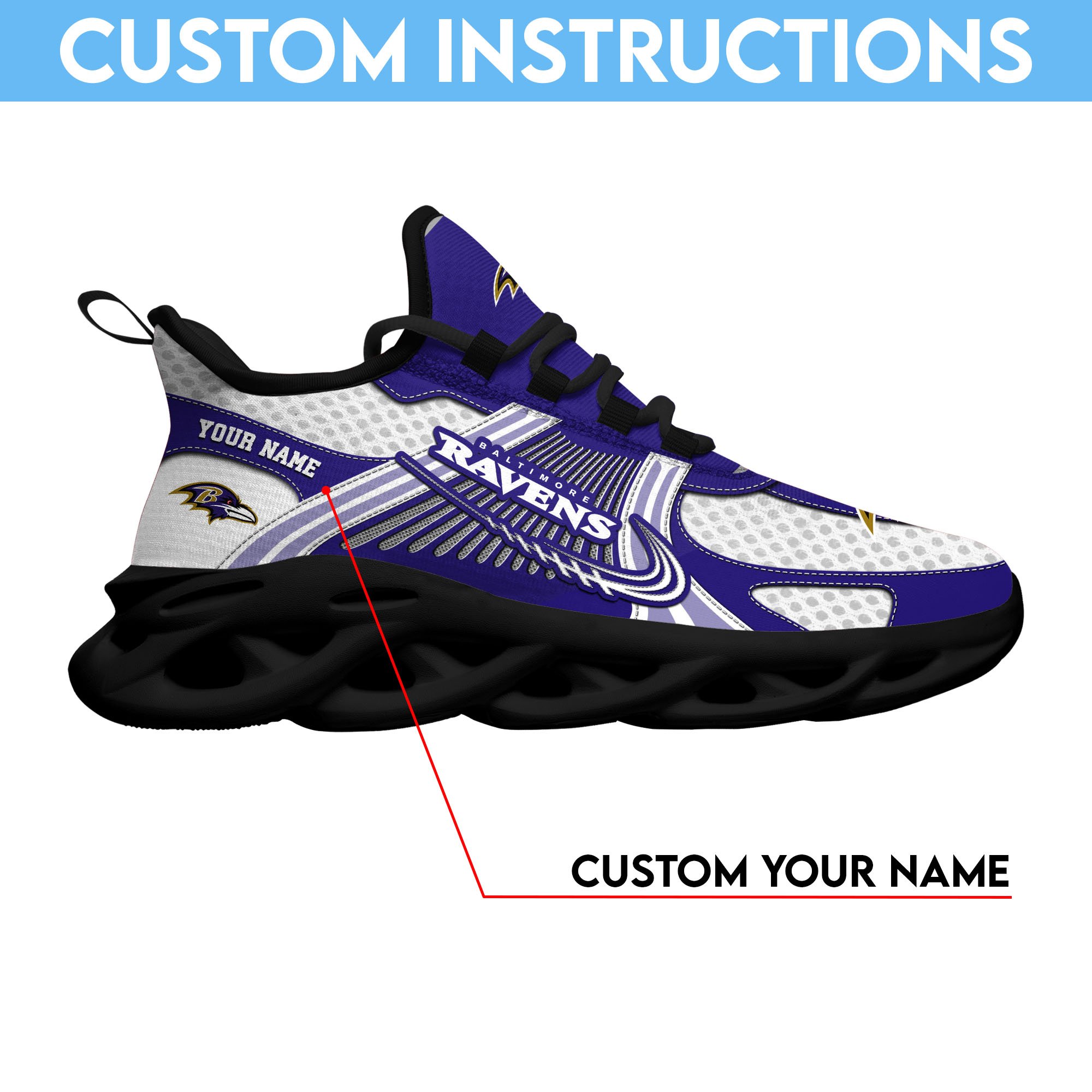 Baltimore Ravens Clunky Sneakers Custom Your Name, Sport Sneakers For Fans, Gifts For Sport Lovers, Gift For Dad
