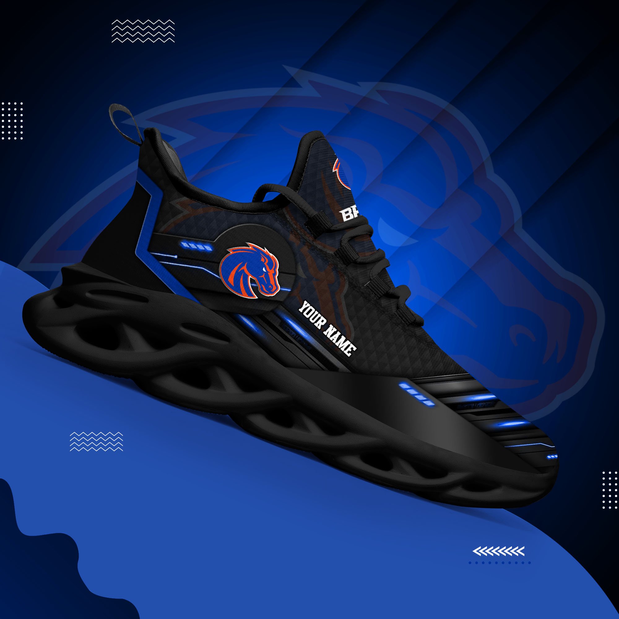 Boise State Broncos Black Clunky Sneaker Custom Name, Max Soul Shoes, Sport Gifts For Fan