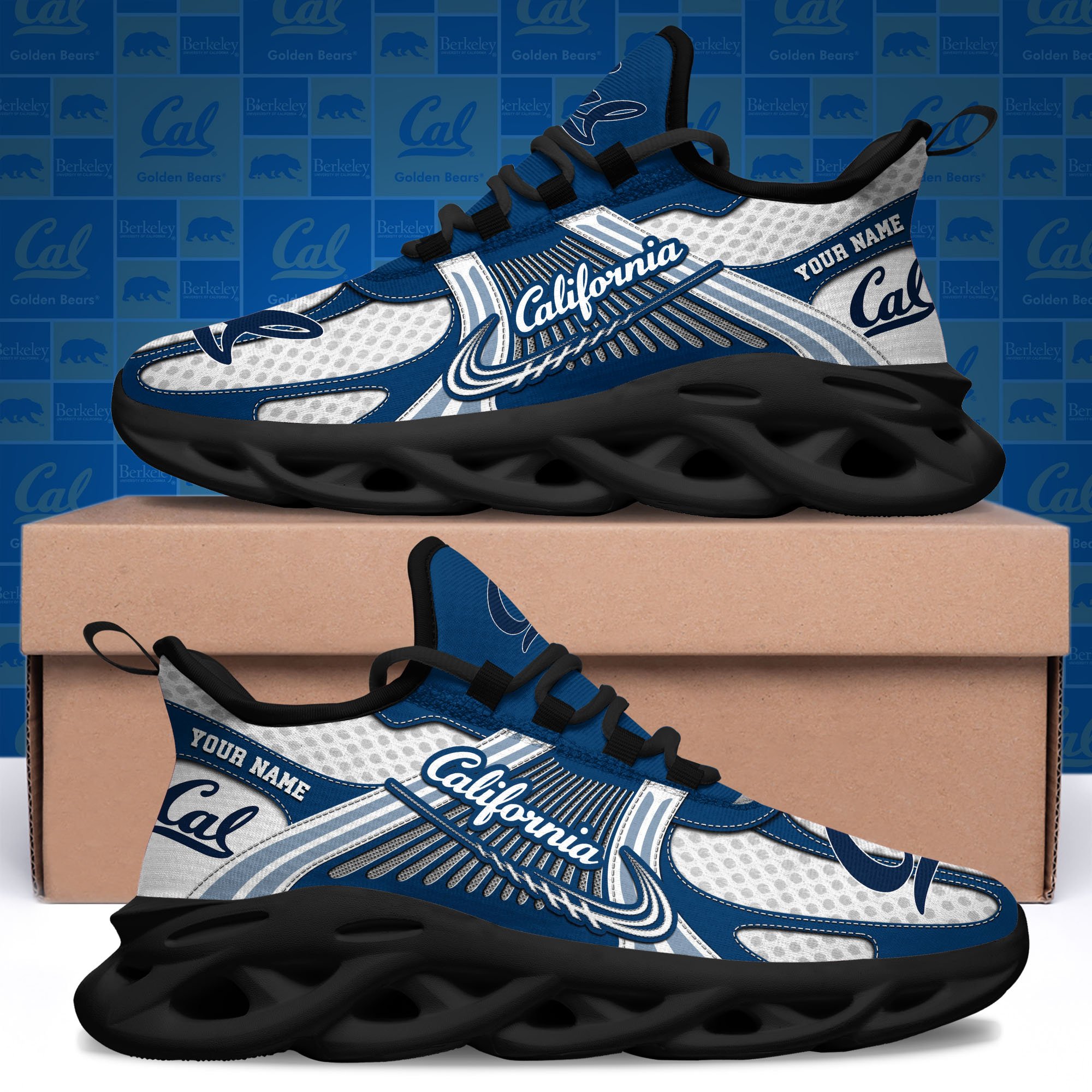 California Golden Bears Clunky Sneakers Custom Your Name, Sport Sneakers, Sport Gifts For Fan, Gifts For Him