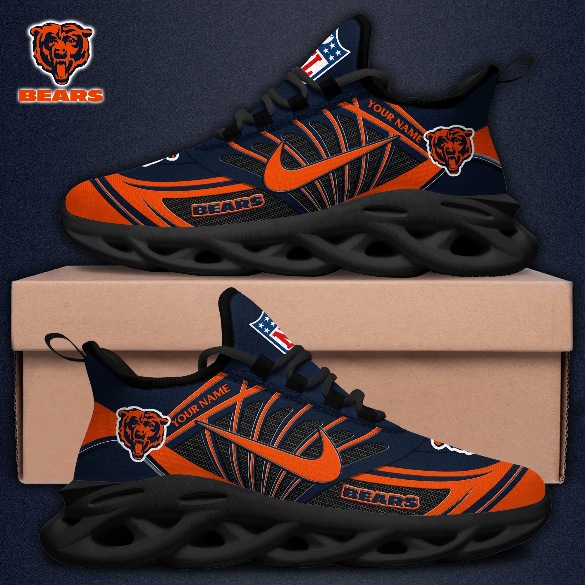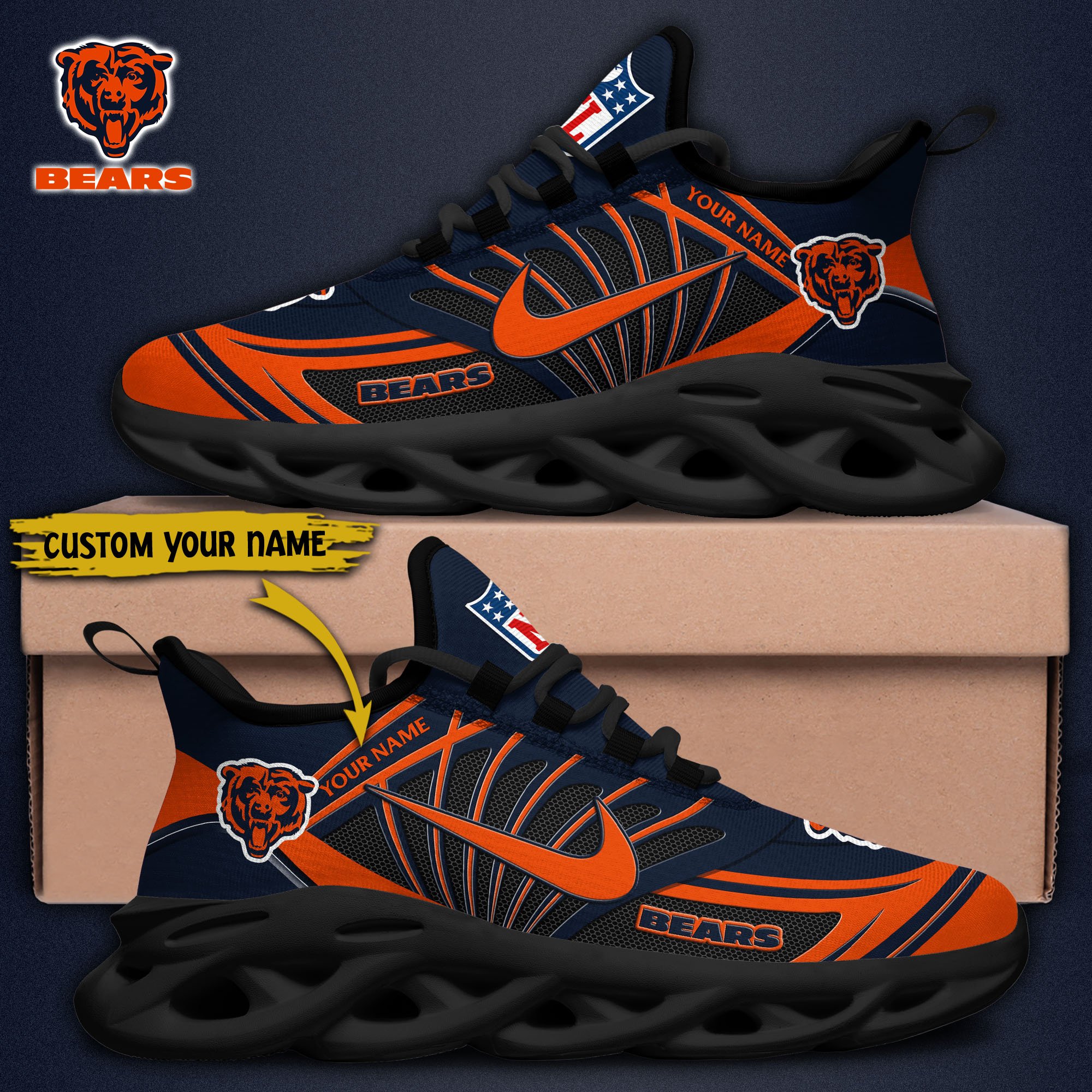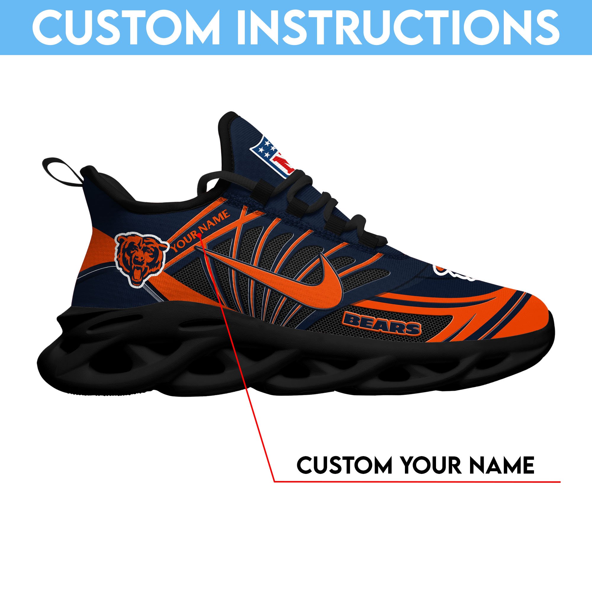 Chicago Bears Black Max Soul Shoes 2026 Versions Custom Name 898