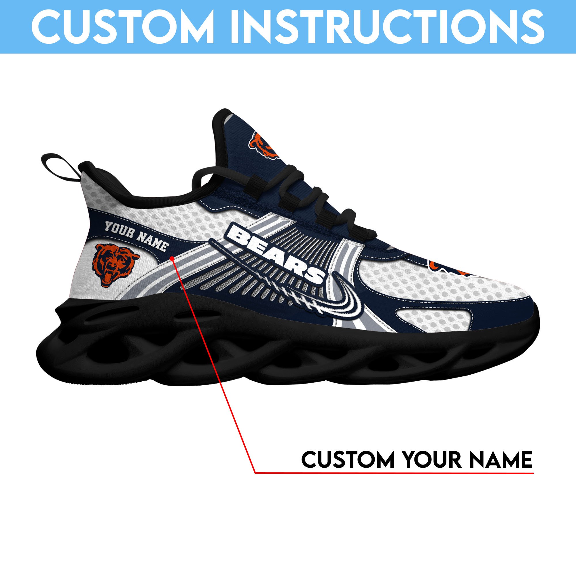 Chicago Bears Clunky Sneakers Custom Your Name, Sport Sneakers For Fans, Gifts For Sport Lovers, Gift For Dad