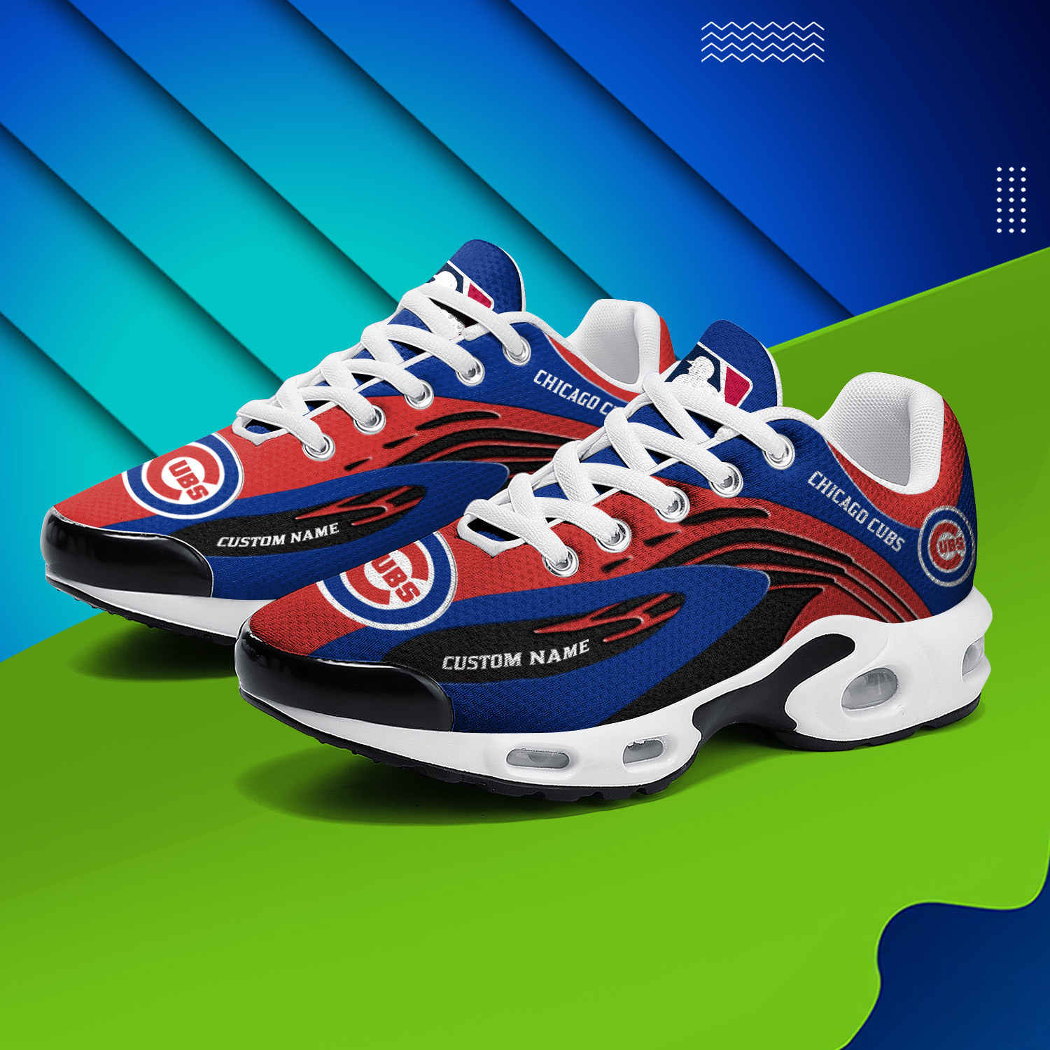 Chicago Cubs Personalized Name Team Logo Mix Colors Wave Line TN Shoes Air Cushion Sneakers