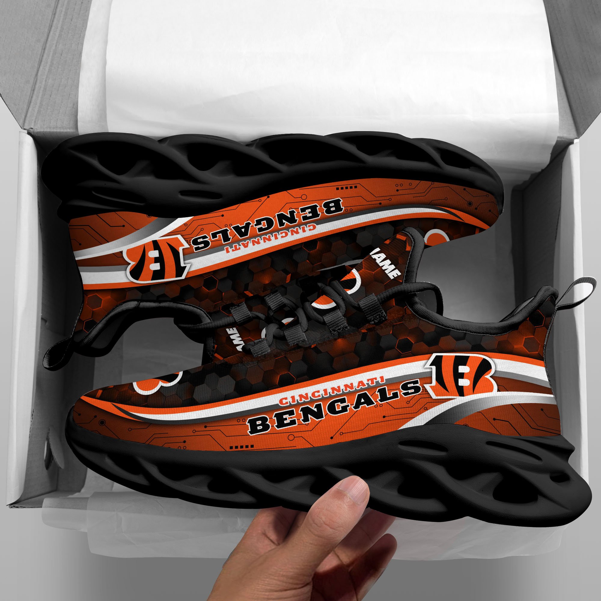 Cincinnati Bengals Black Clunky Sneakers Custom Name, Max Soul Shoes, Sport Gifts