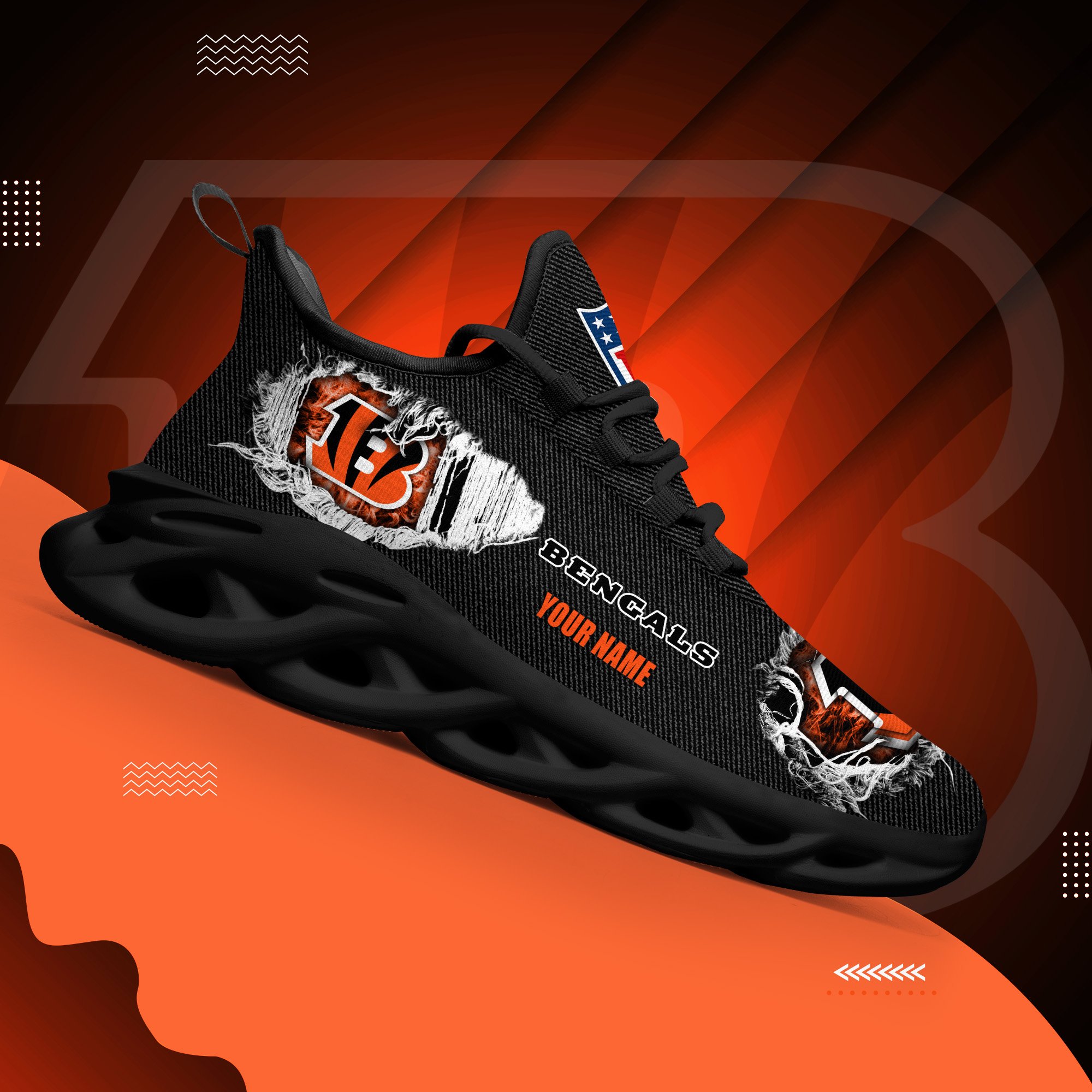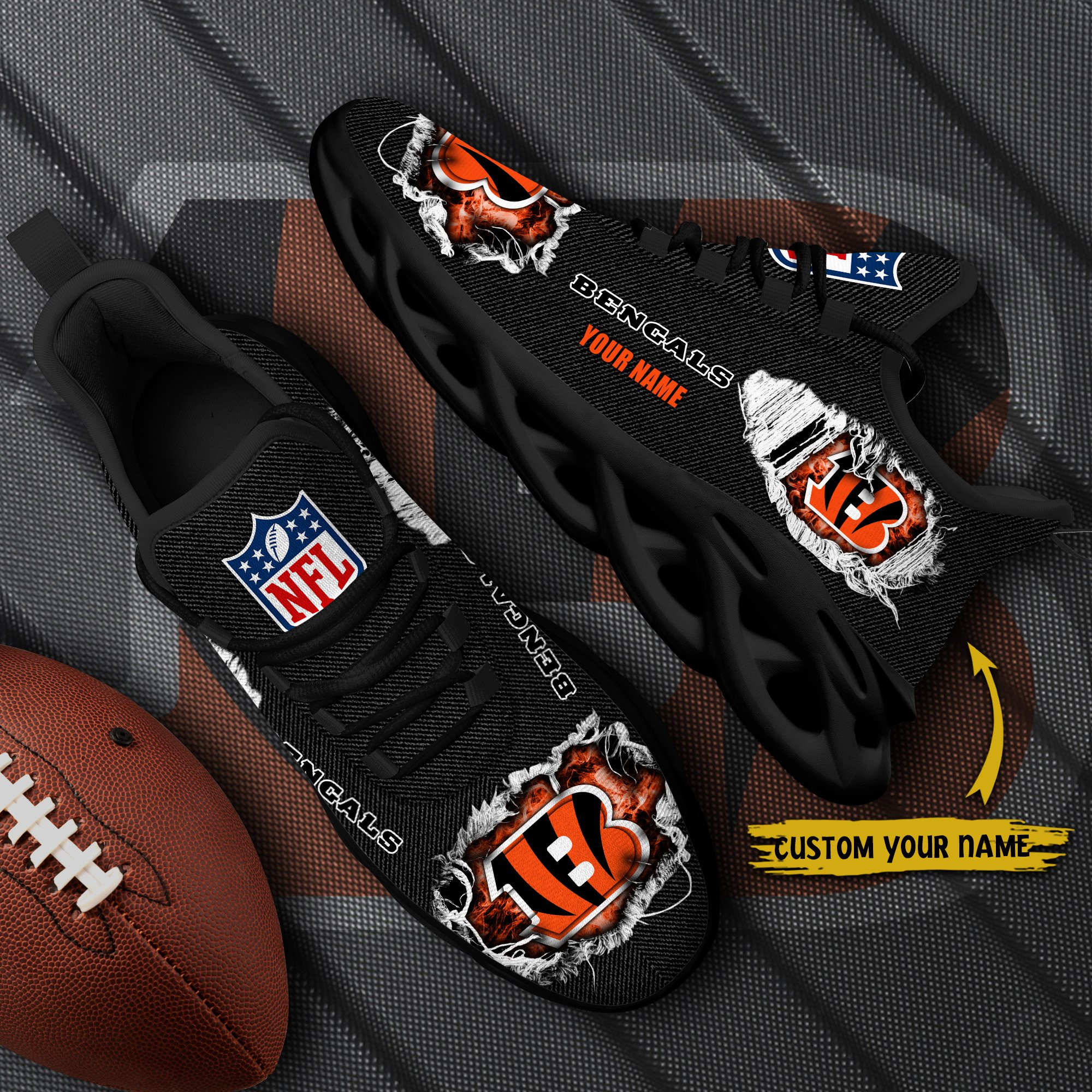 Cincinnati Bengals Black Max Soul Shoes 2026 Versions Custom Name 554