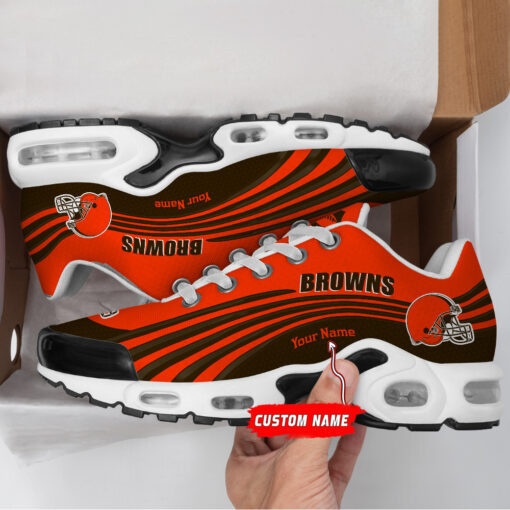 Cleveland Browns Personalized Name Team Colors Wave Lines TN Air Max Shoes Air Cushion Sneakers