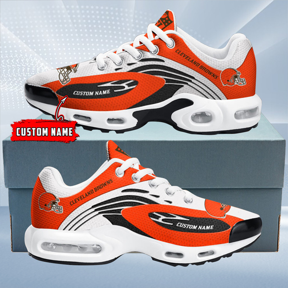 Cleveland Browns Personalized Name Team Logo Mix Colors Wave Line TN Air Max Shoes Air Cushion Sneakers
