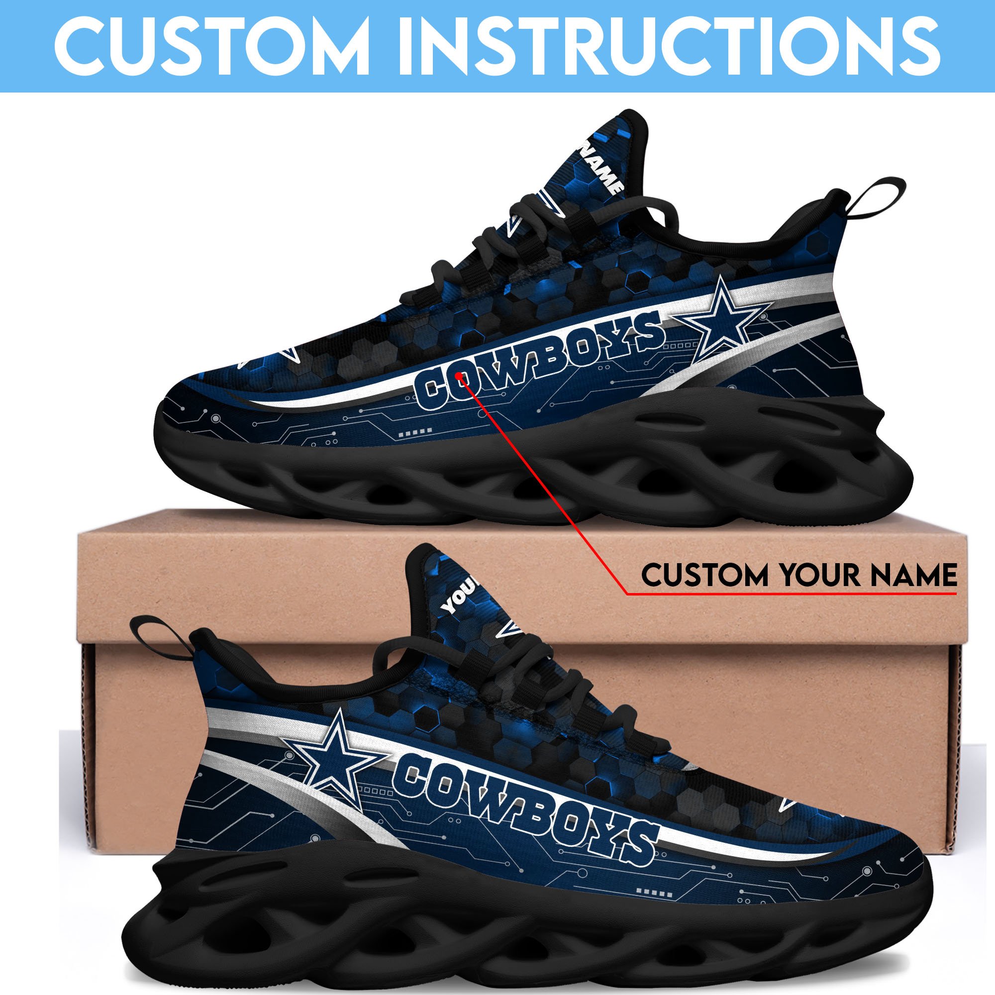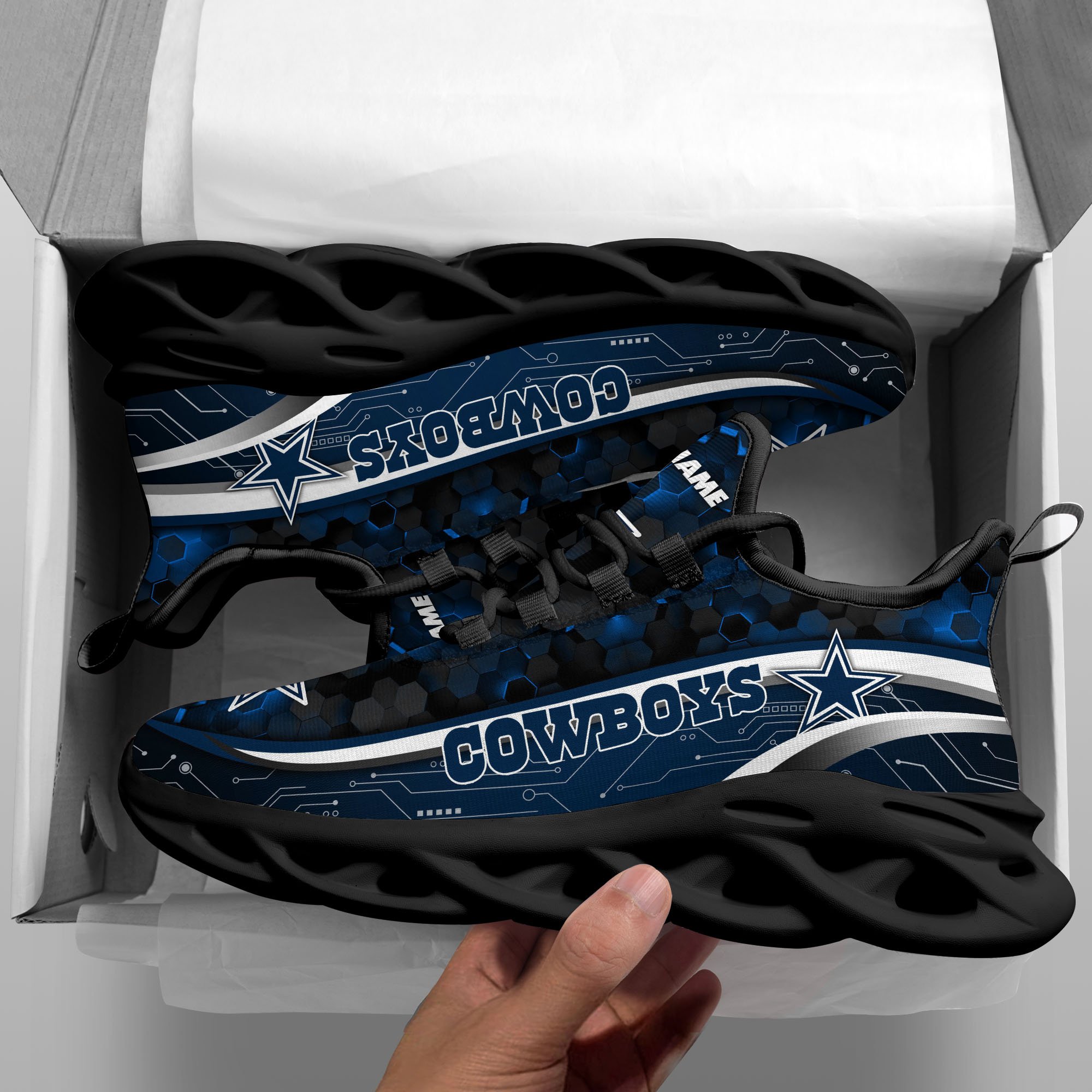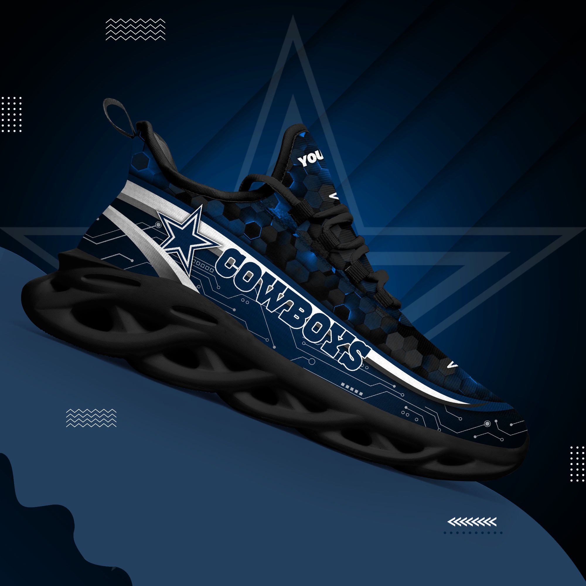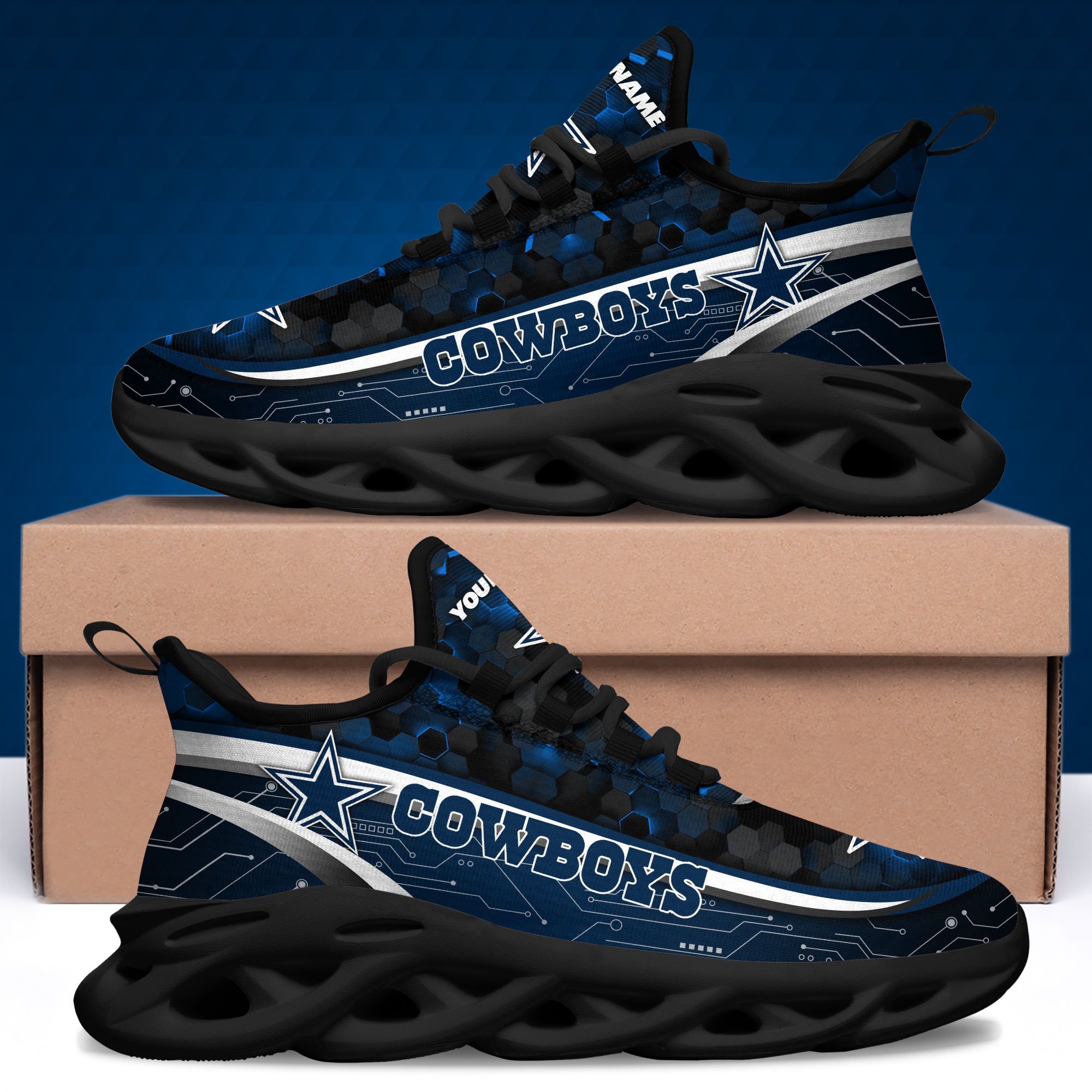 Dallas Cowboys Black Clunky Sneakers Custom Name, Max Soul Shoes, Sport Gifts
