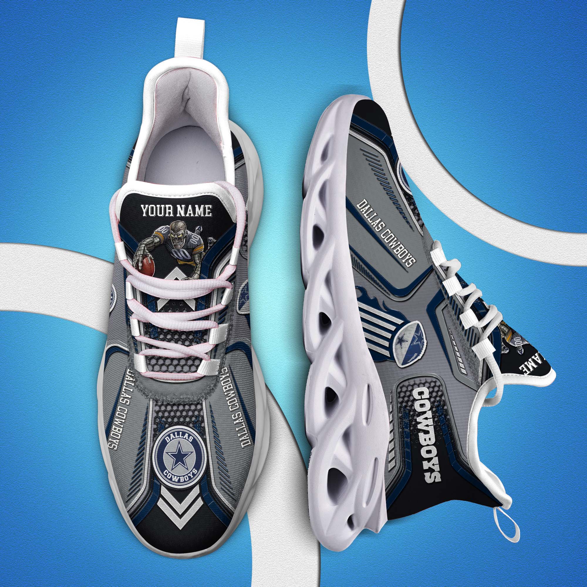 Dallas Cowboys White C Sneakers 2026 Version Personalized Your Name, Sport Sneakers , Sport Gifts PH605
