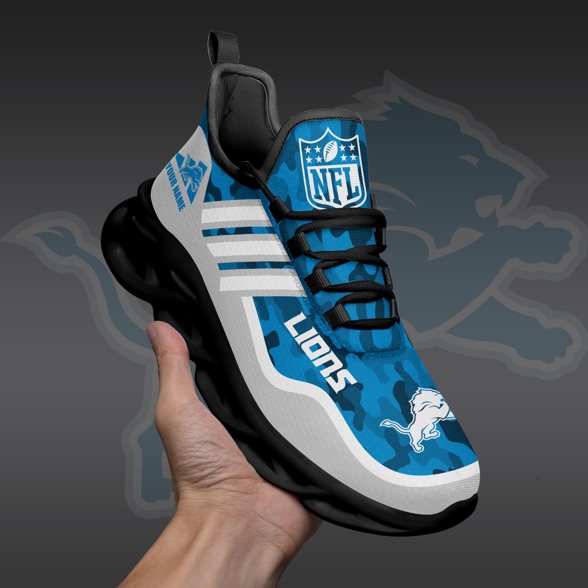Detroit Lions Black Max Soul Shoes 2026 Versions Custom Name 430