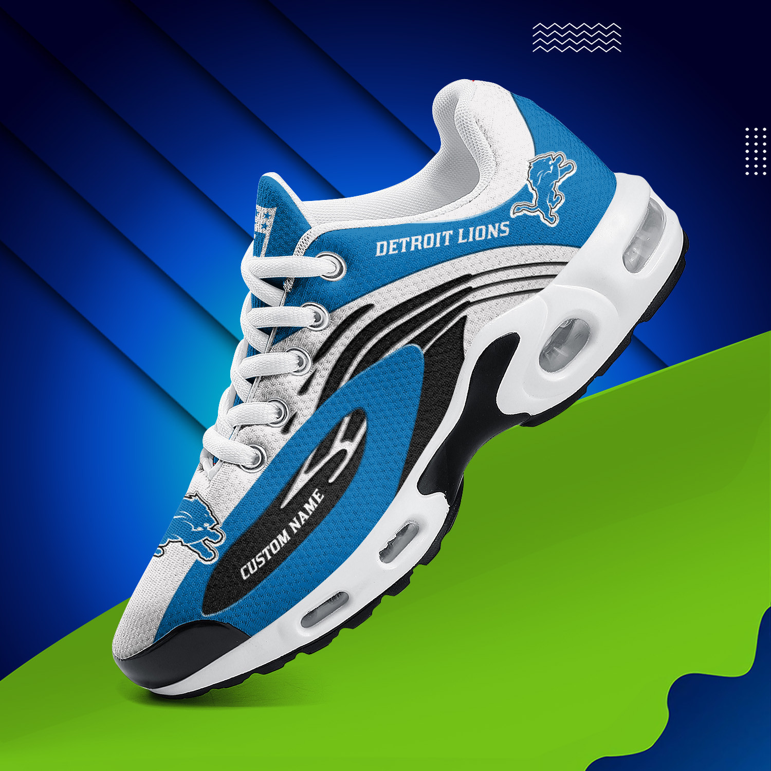 Detroit Lions Personalized Name Team Logo Mix Colors Wave Line TN Shoes Air Cushion Sneakers