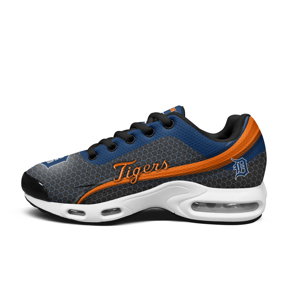 Detroit Tigers Personalized Name Team Colors Wave Line Beehive Pattern TN Air Max Shoes Air Cushion Sneakers