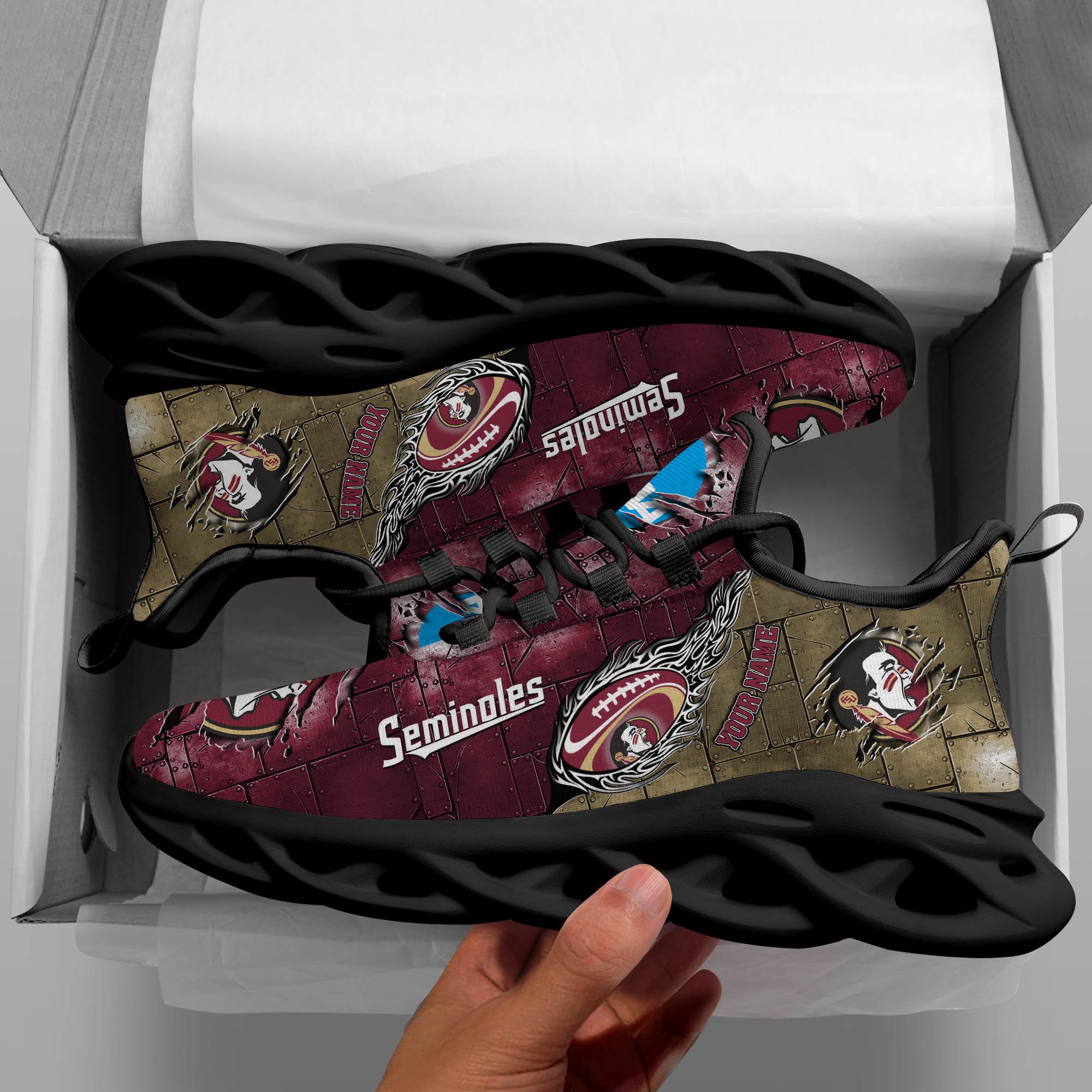 Florida State Seminoles Black Max Soul Shoes 2026 Versions, White Max Soul Shoes Custom Your Name PH879