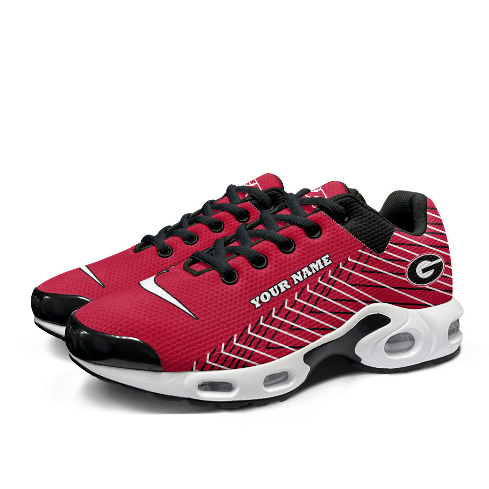 Georgia Bulldogs Personalized Name Team Colors Jagged Lines TN Air Max Shoes Air Cushion Sneakers