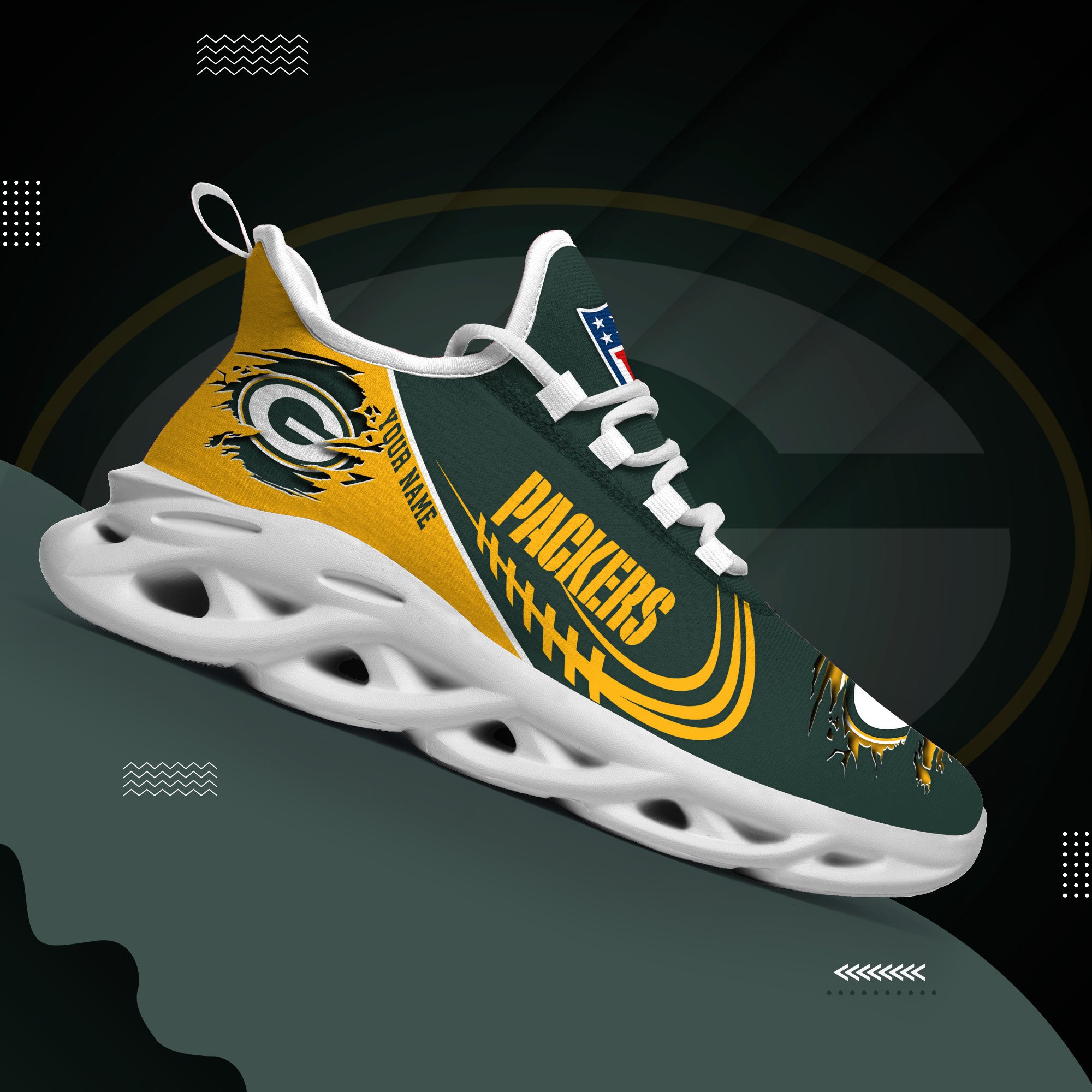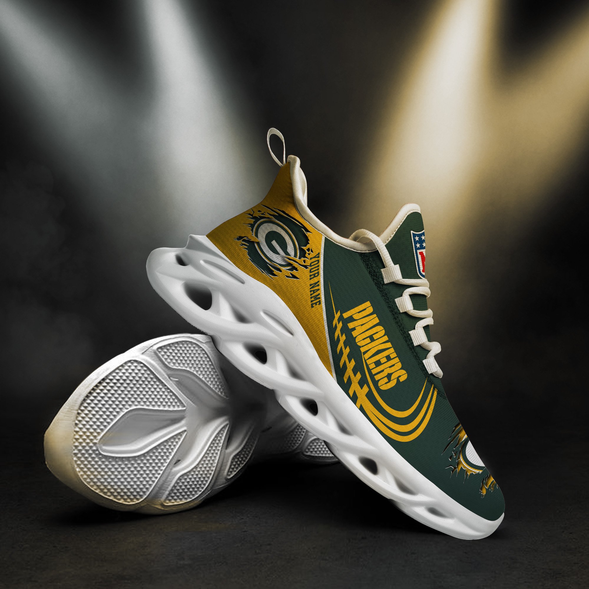 Green Bay Packers Black Max Soul Shoes 2026 Versions Custom Name 003