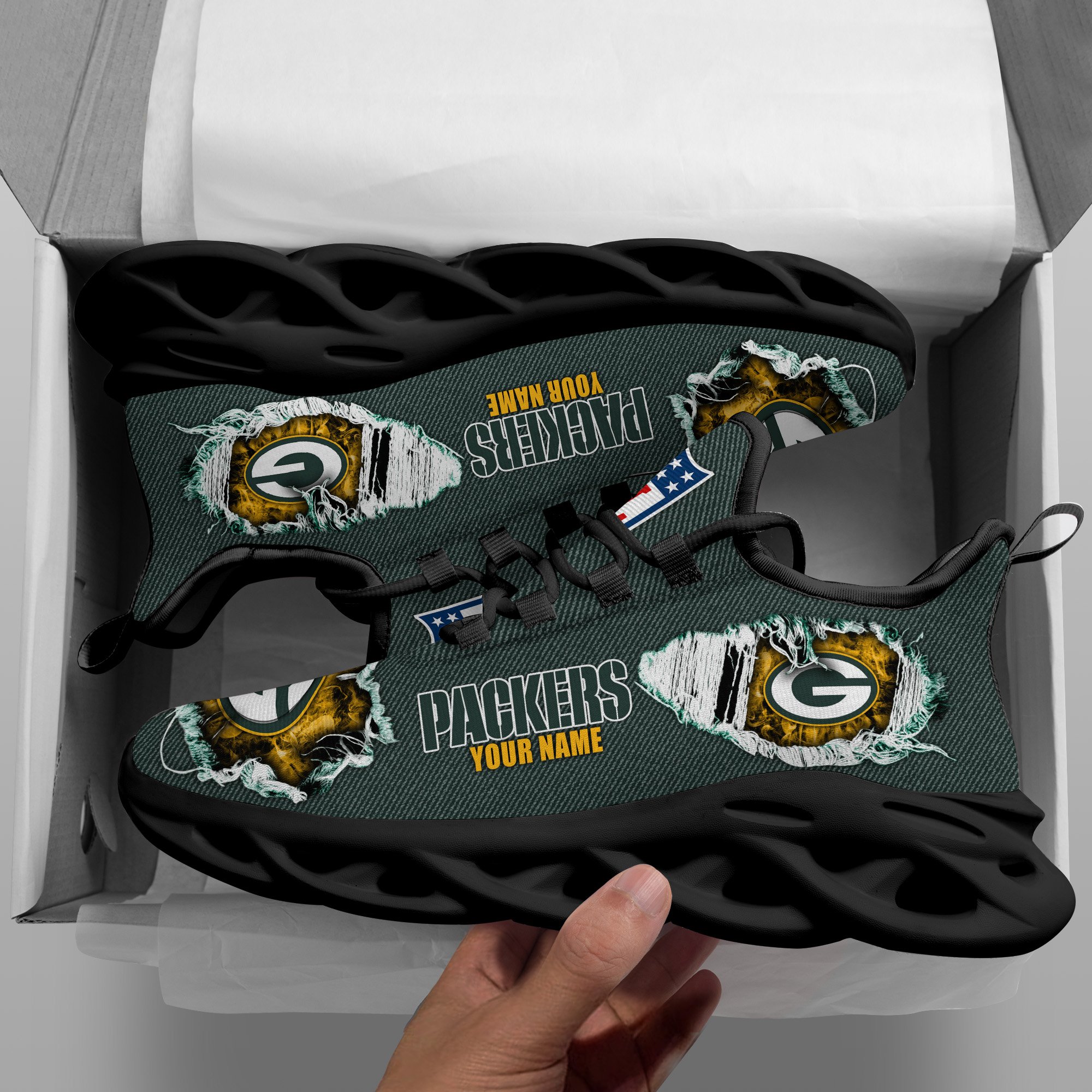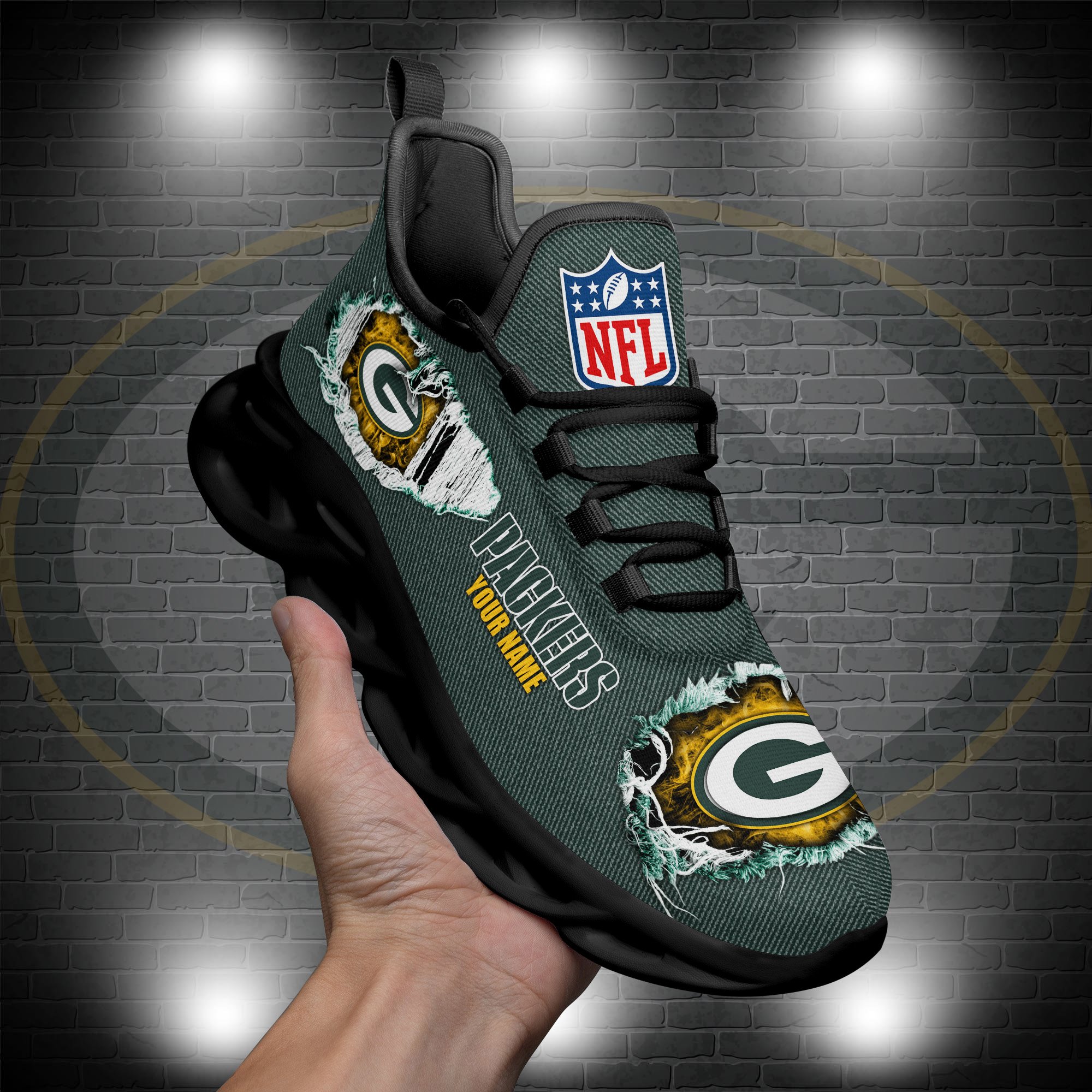 Green Bay Packers Black Max Soul Shoes 2026 Versions Custom Name 554