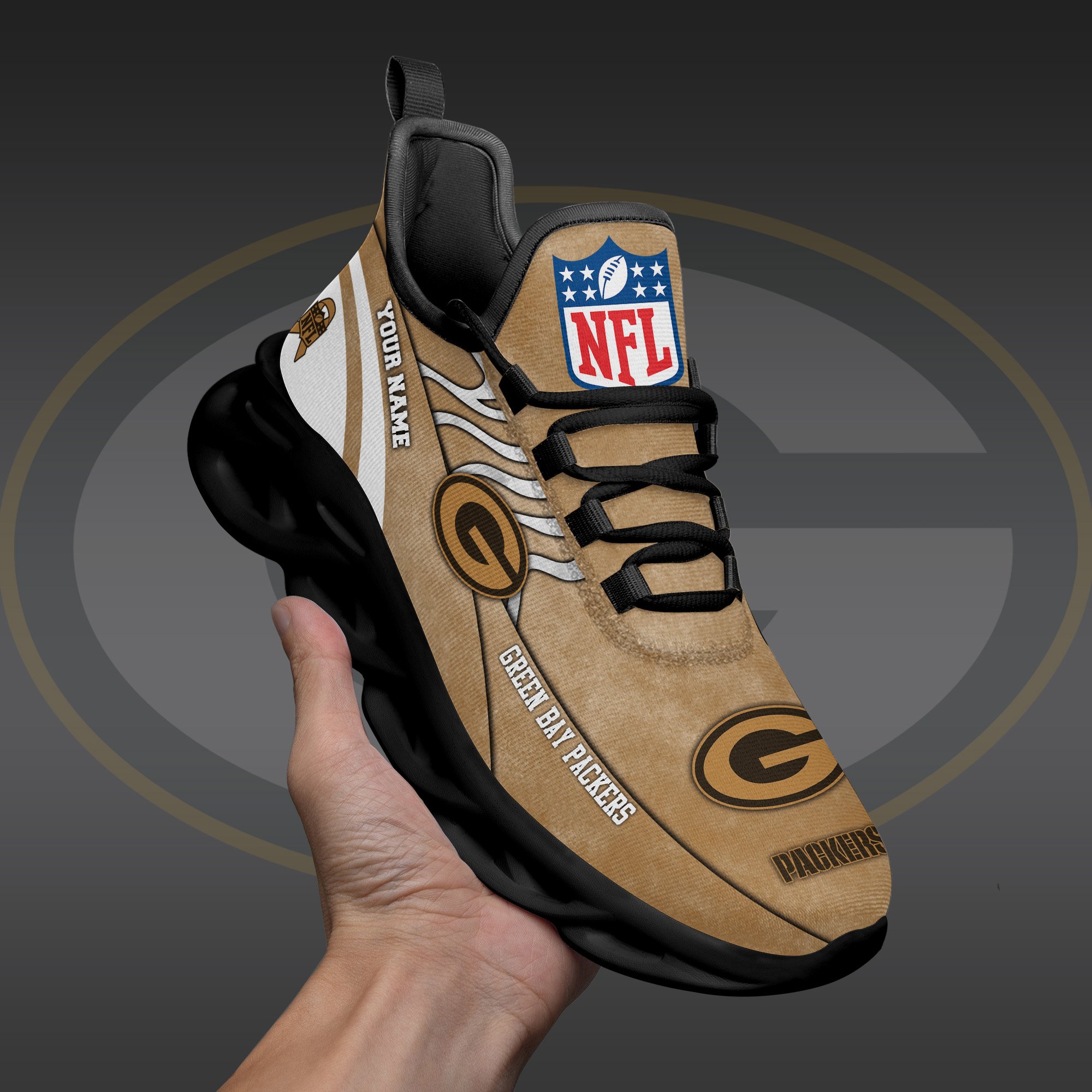 Green Bay Packers Black Max Soul Shoes 2026 Versions Custom Your Name And Number 264