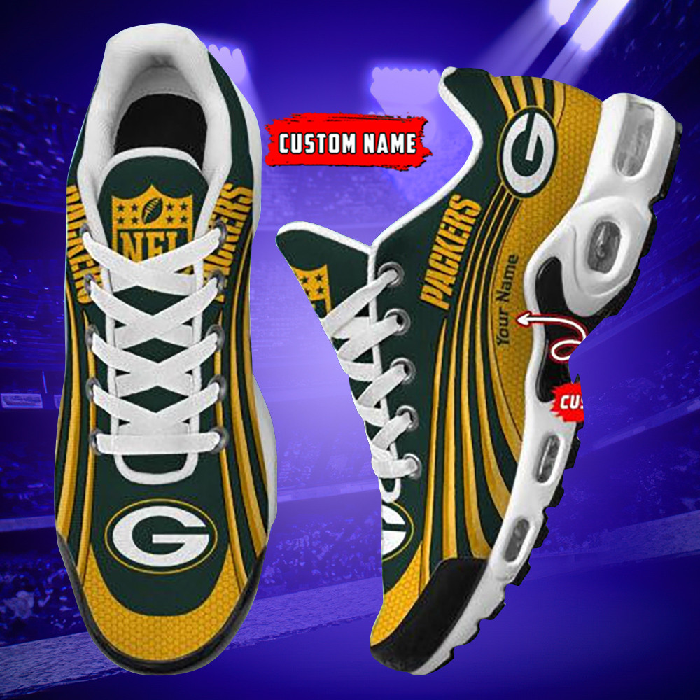 Green Bay Packers Personalized Name Team Colors Wave Lines TN Air Max Shoes Air Cushion Sneakers