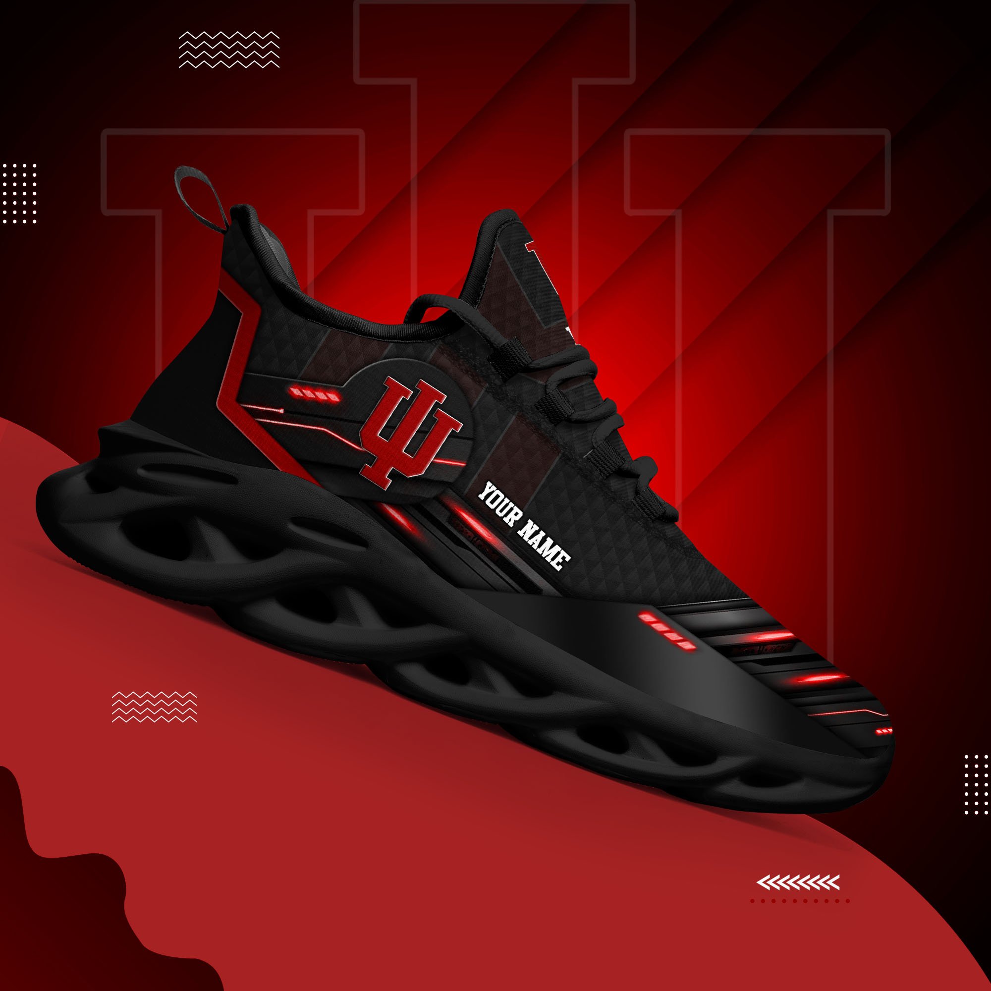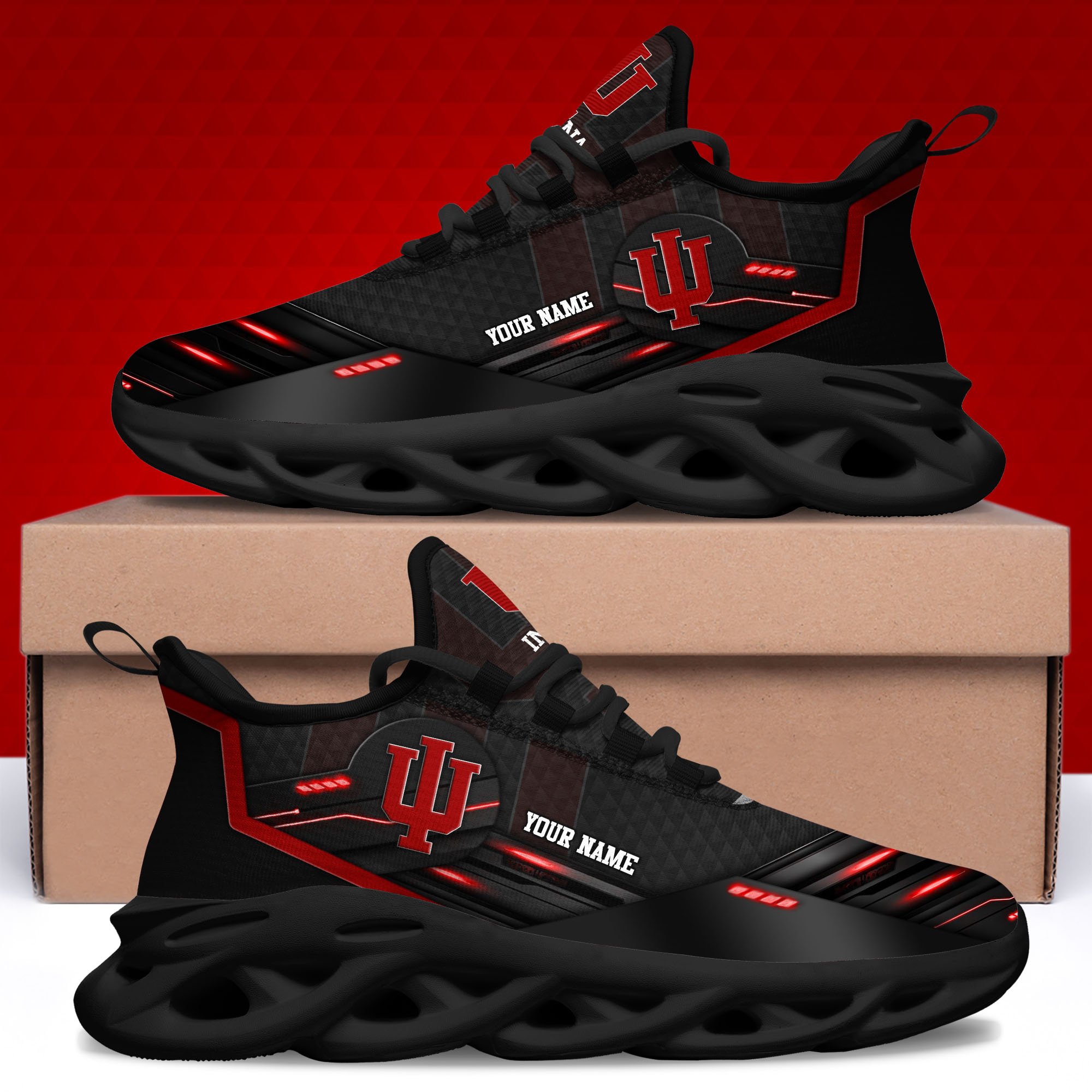 Indiana Hoosiers Black Clunky Sneaker Custom Name, Max Soul Shoes, Sport Gifts For Fan
