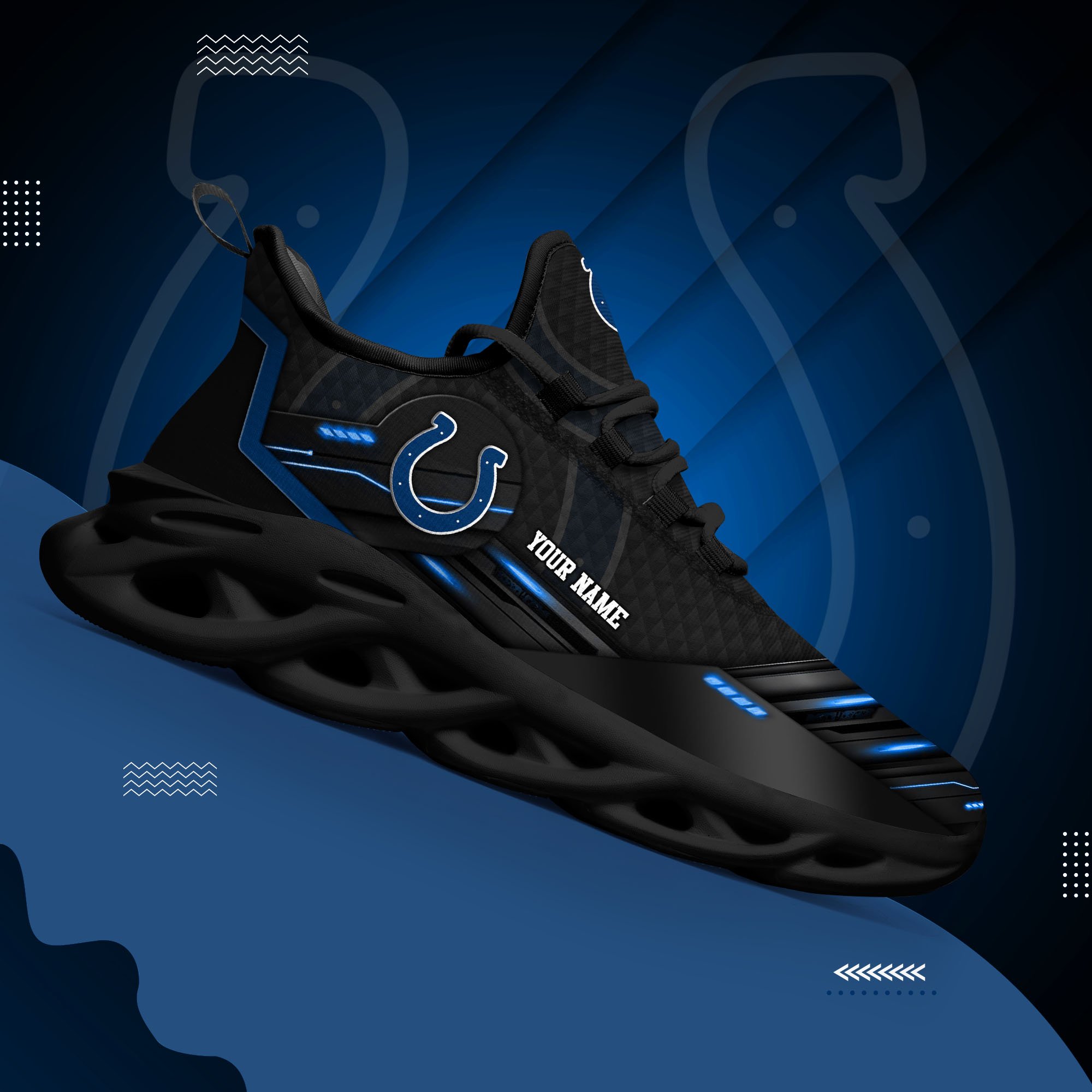 Indianapolis Colts Black Clunky Sneaker Custom Name, Max Soul Shoes, Sport Gifts For Fan