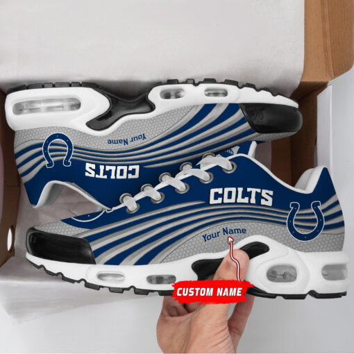 Indianapolis Colts Personalized Name Team Colors Wave Lines TN Air Max Shoes Air Cushion Sneakers