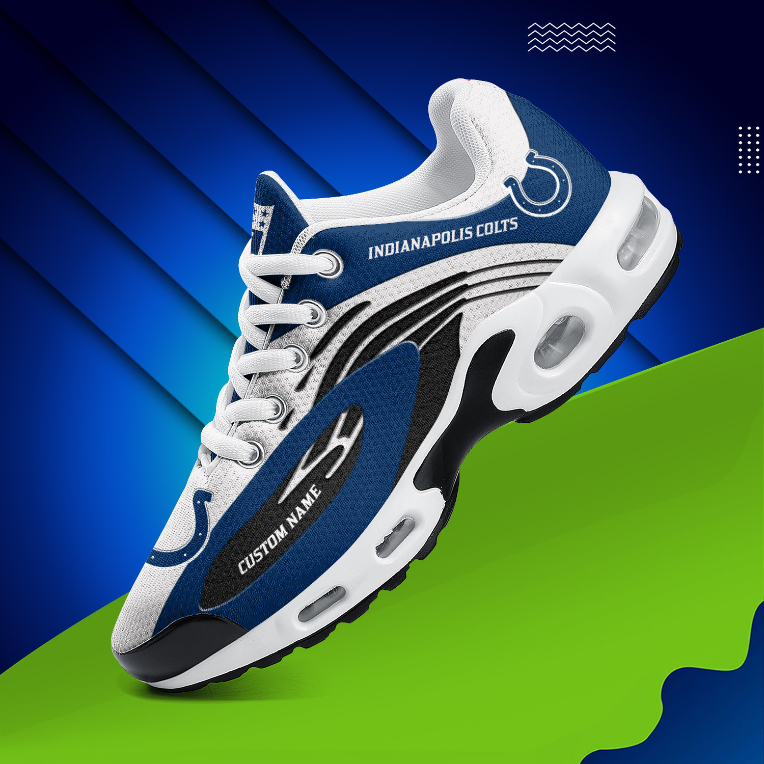 Indianapolis Colts Personalized Name Team Logo Mix Colors Wave Line TN Air Max Shoes Air Cushion Sneakers