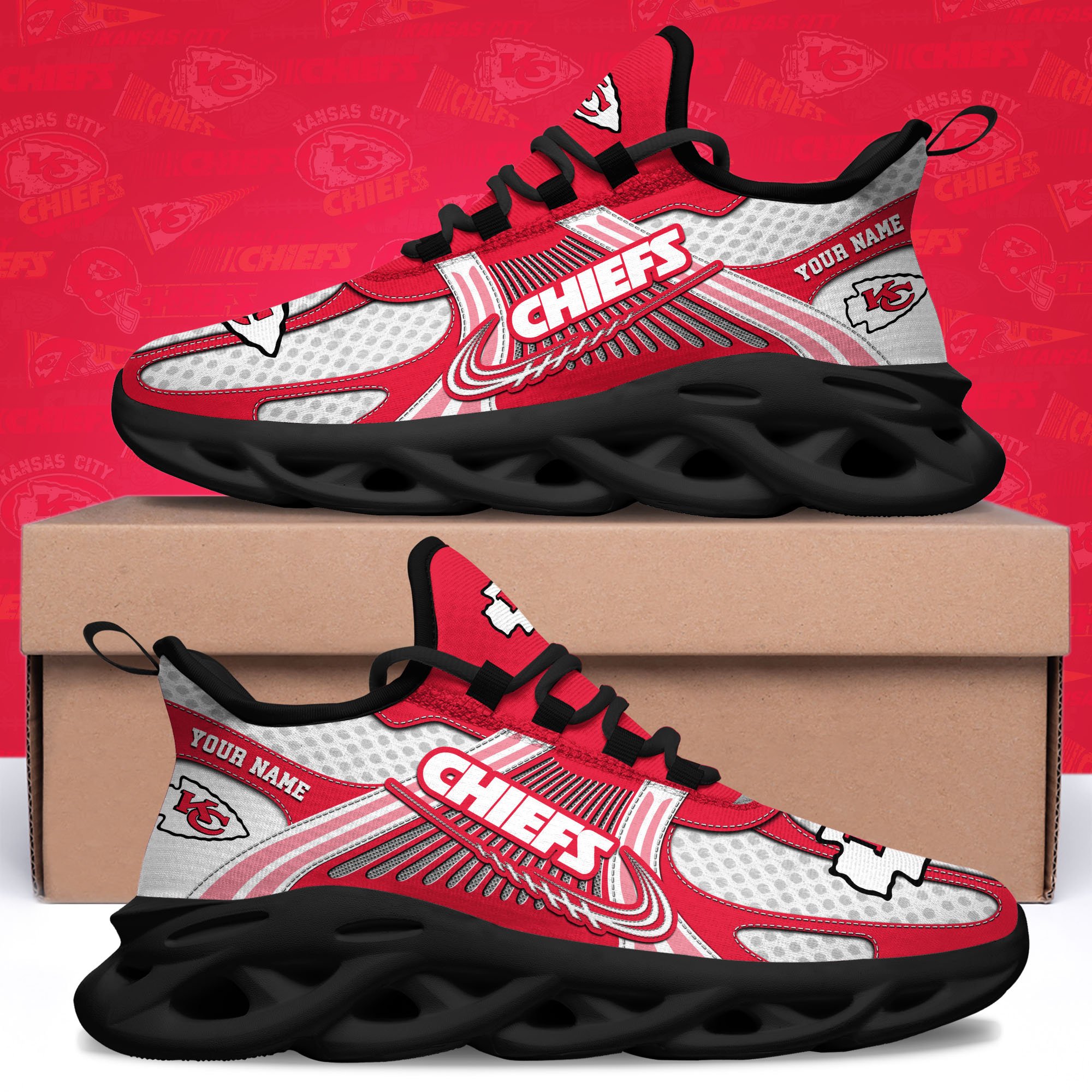 Kansas City Chiefs Clunky Sneakers Custom Your Name, Sport Sneakers For Fans, Gifts For Sport Lovers, Gift For Dad