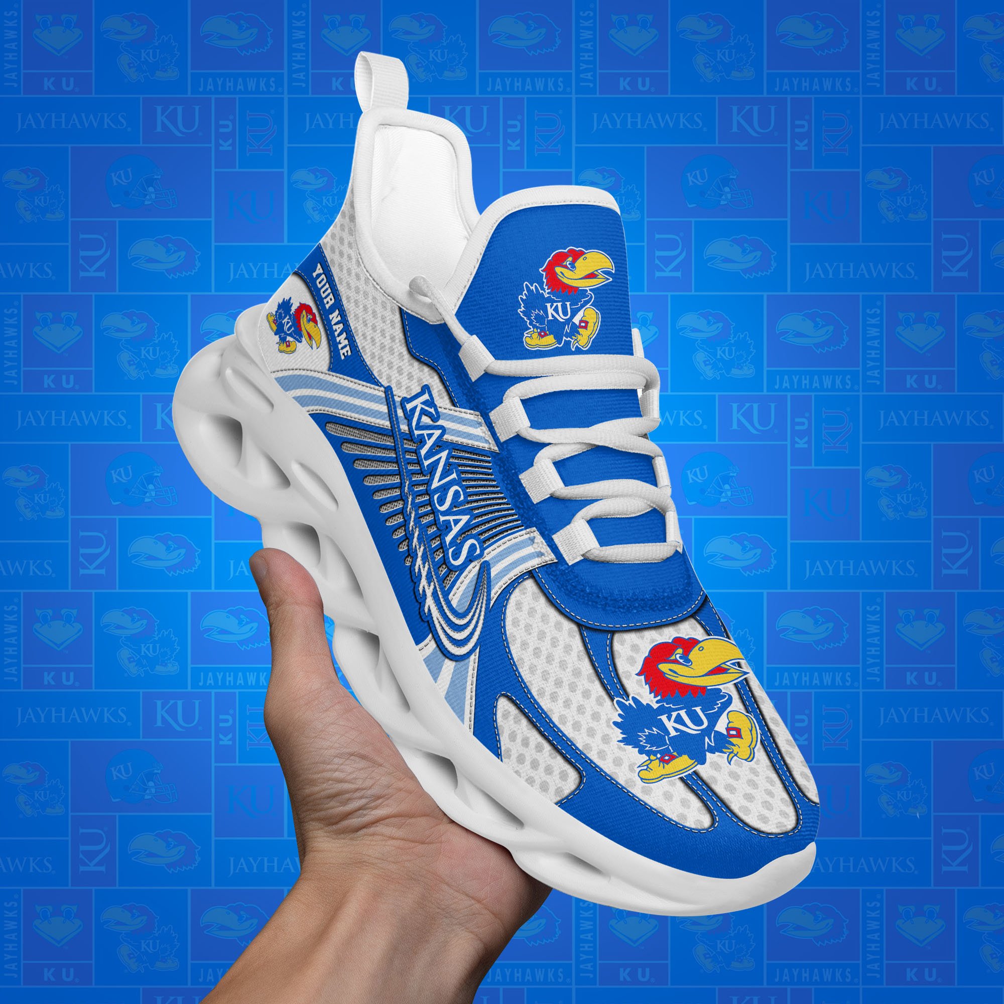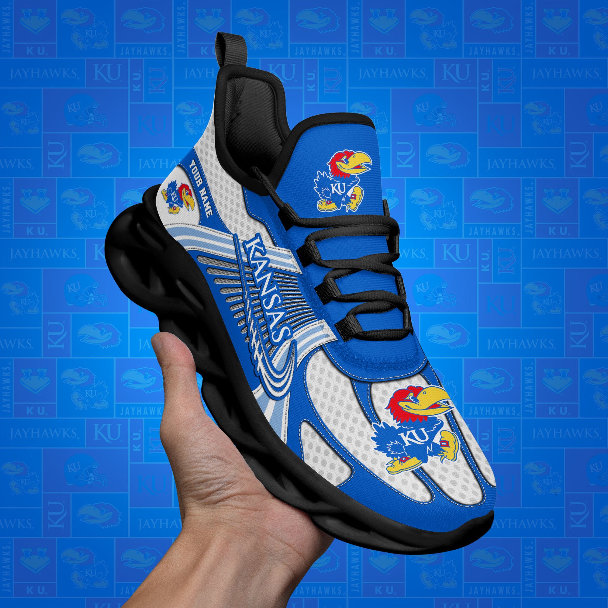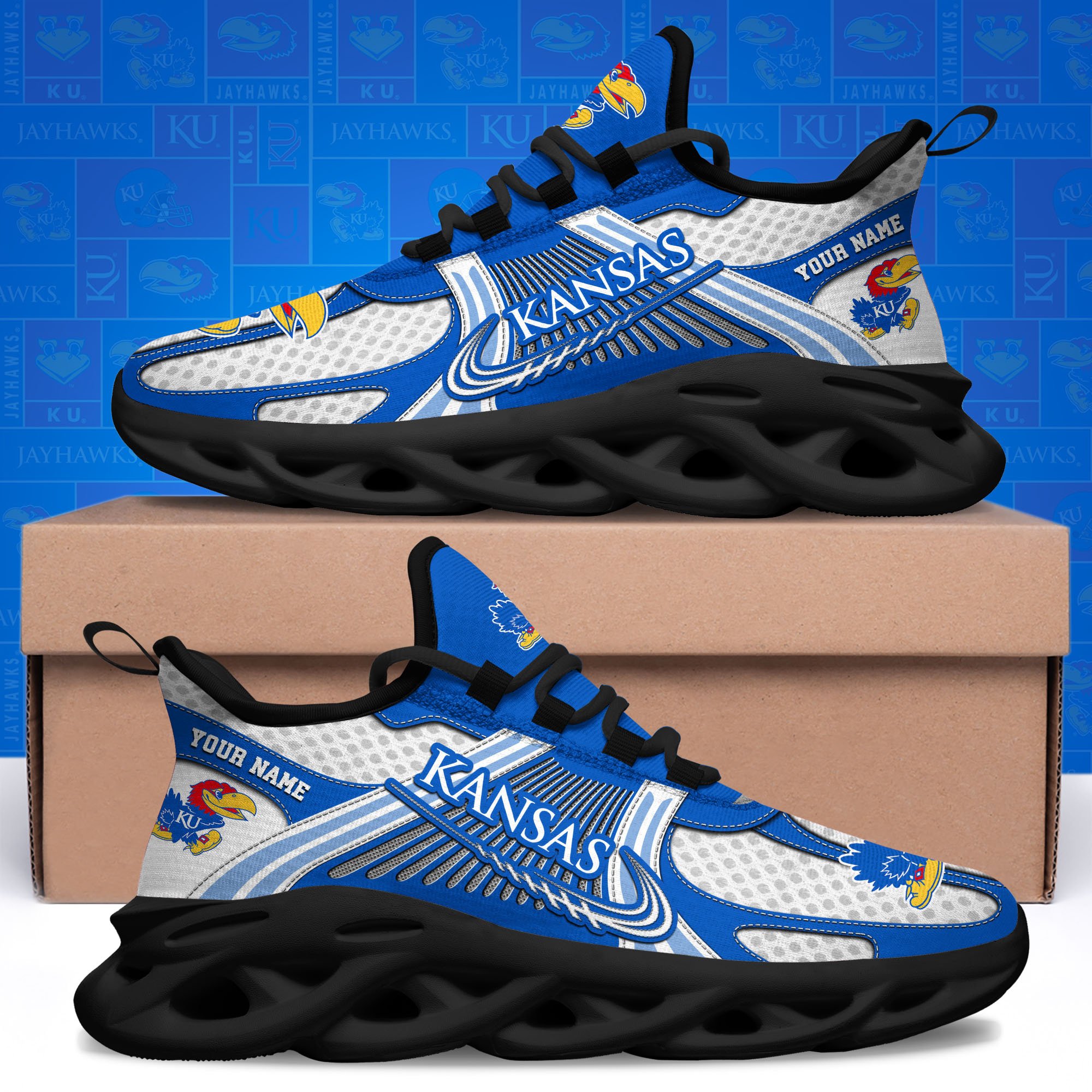 Kansas Jayhawks Clunky Sneakers Custom Your Name, Sport Sneakers, Sport Gifts For Fan, Gifts For Him