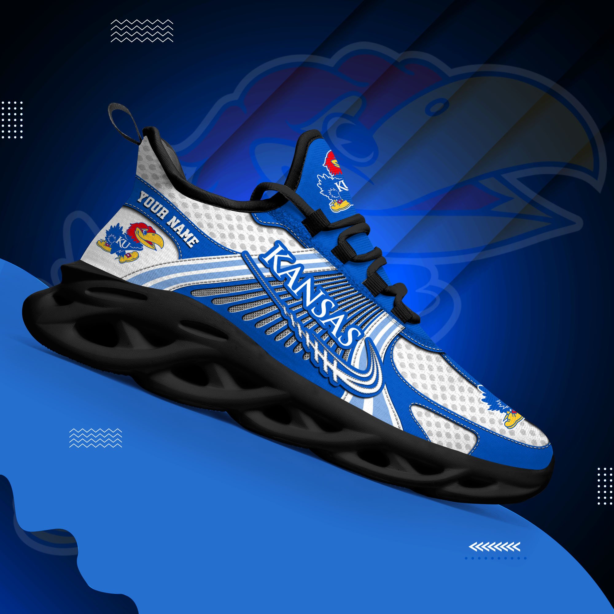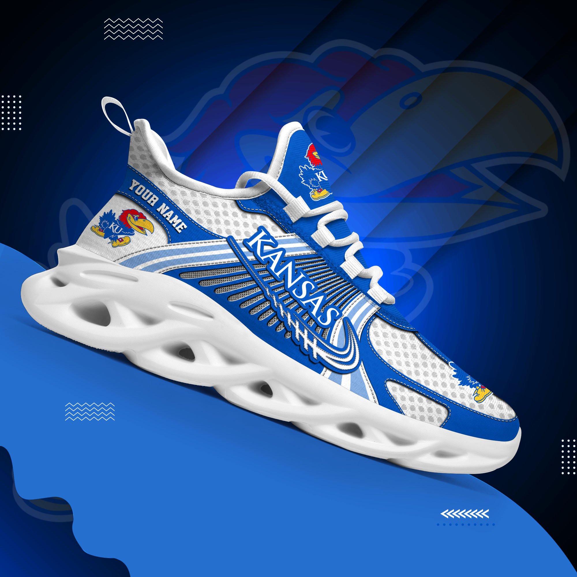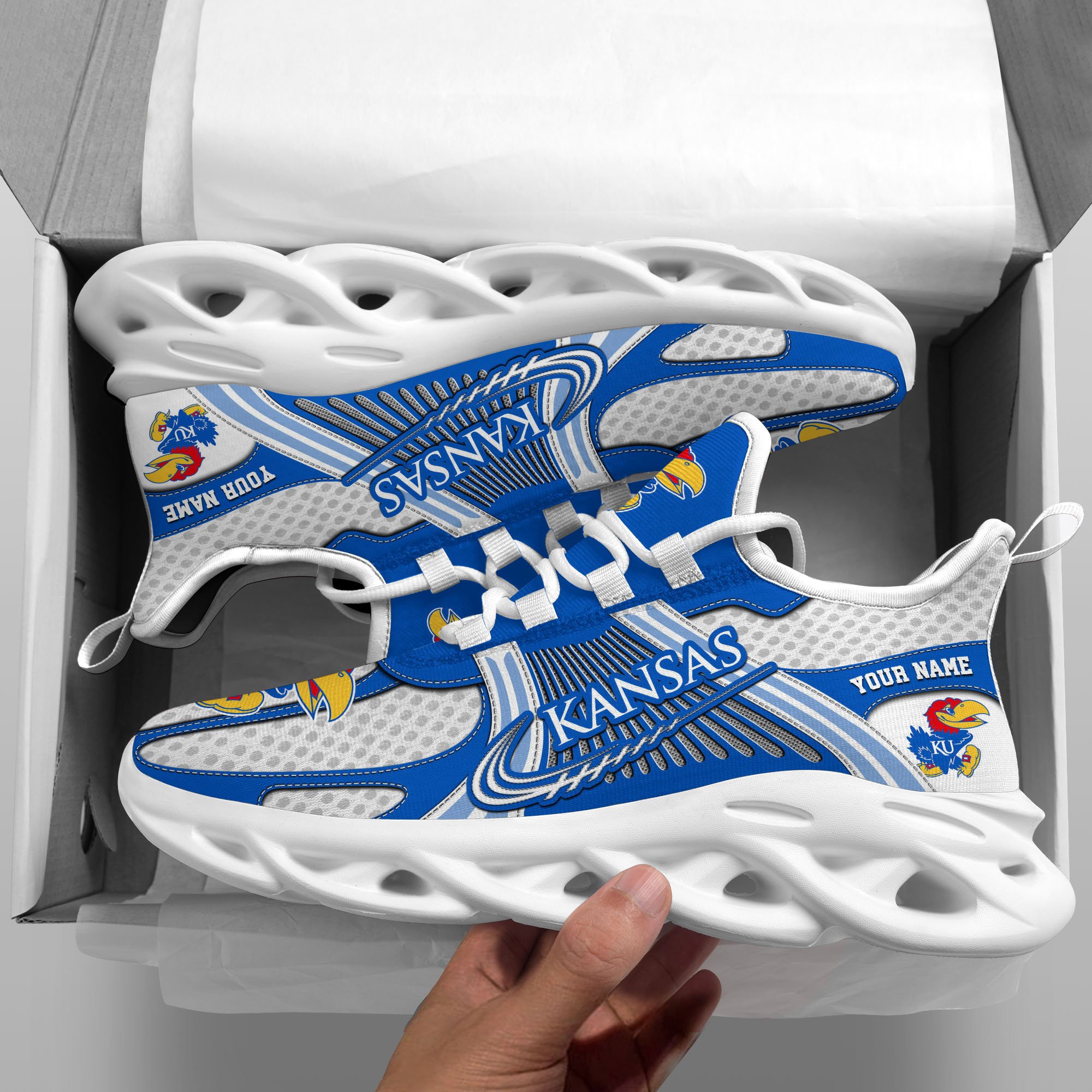 Kansas Jayhawks Clunky Sneakers Custom Your Name, Sport Sneakers, Sport Gifts For Fan, Gifts For Him