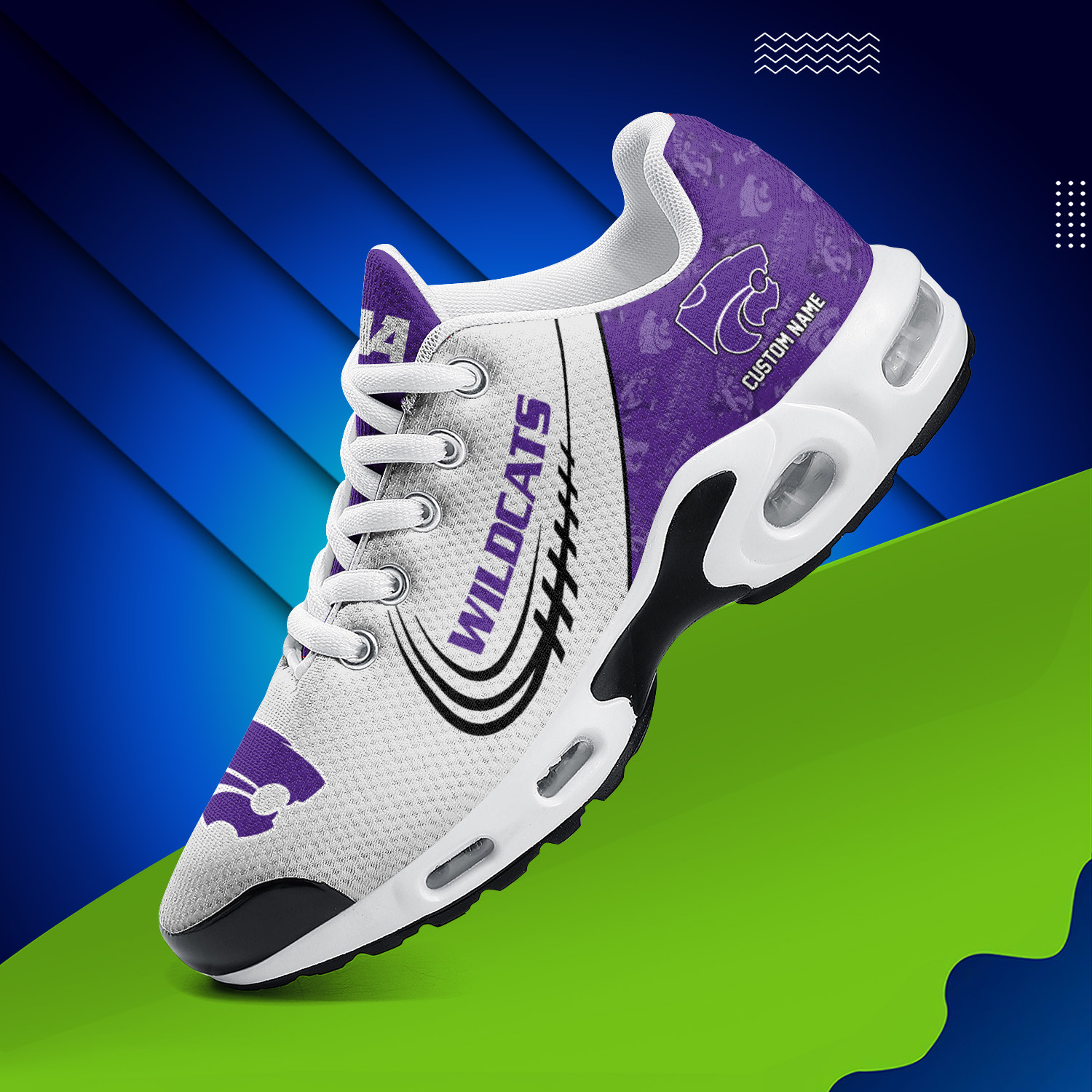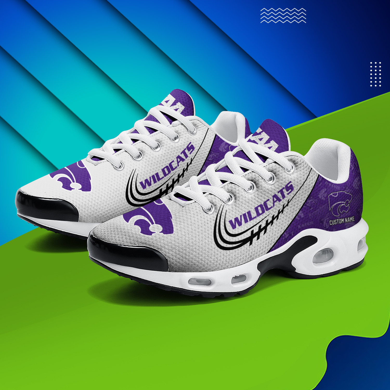 Kansas State Wildcats Personalized Name Team Logo Mix Colors Stitch Line TN Air Max Shoes Air Cushion Sneakers