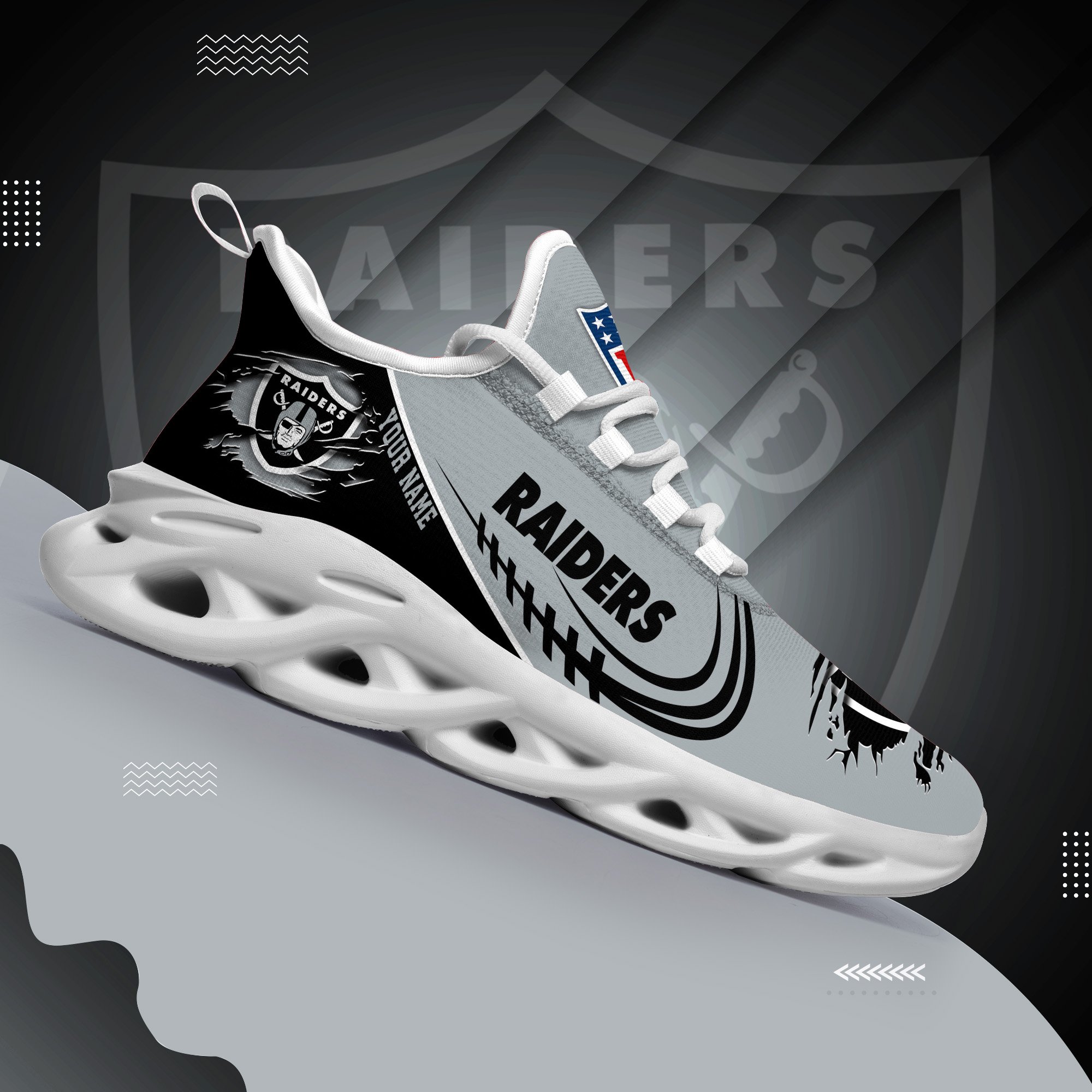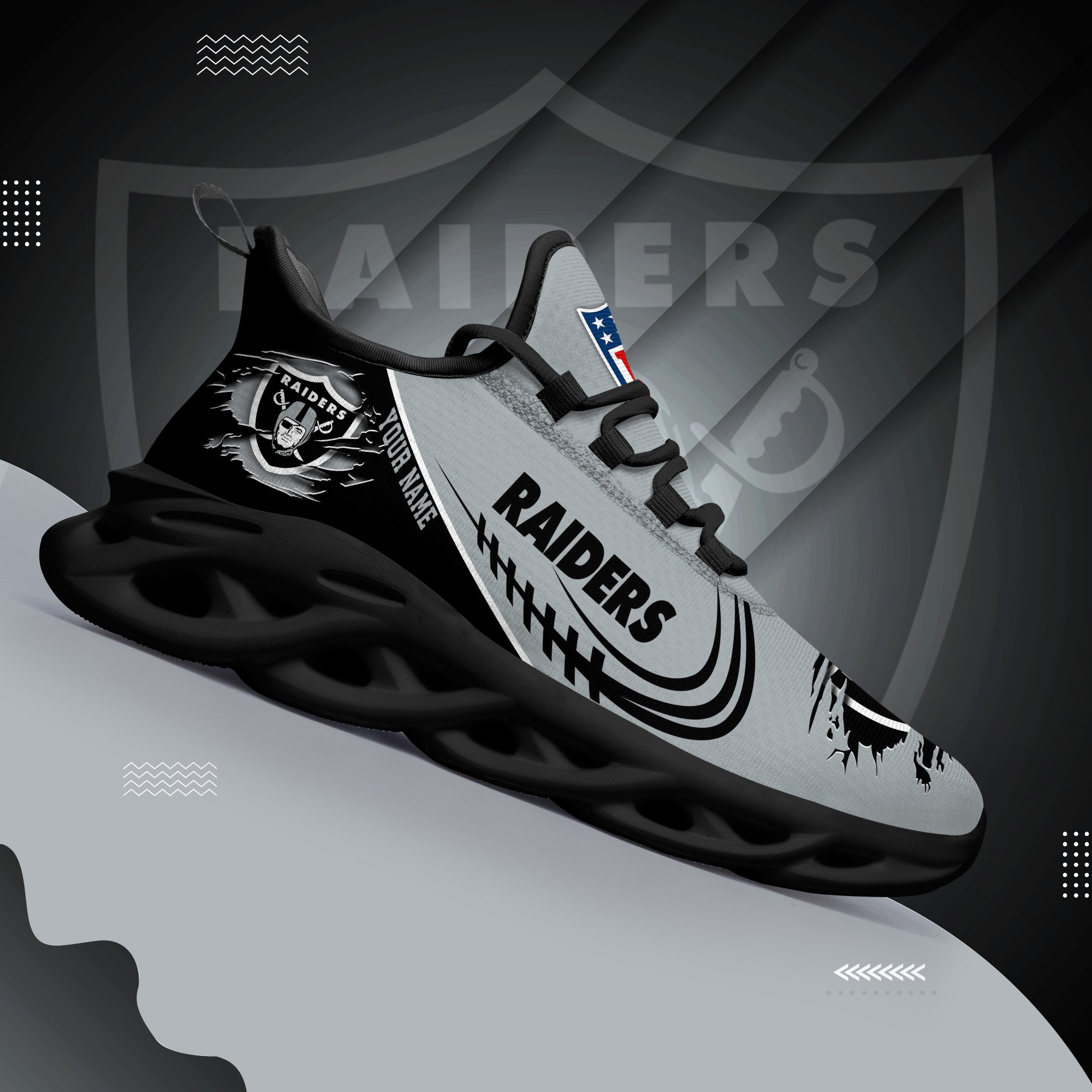 Las Vegas Raiders Black Max Soul Shoes 2026 Versions Custom Name 003