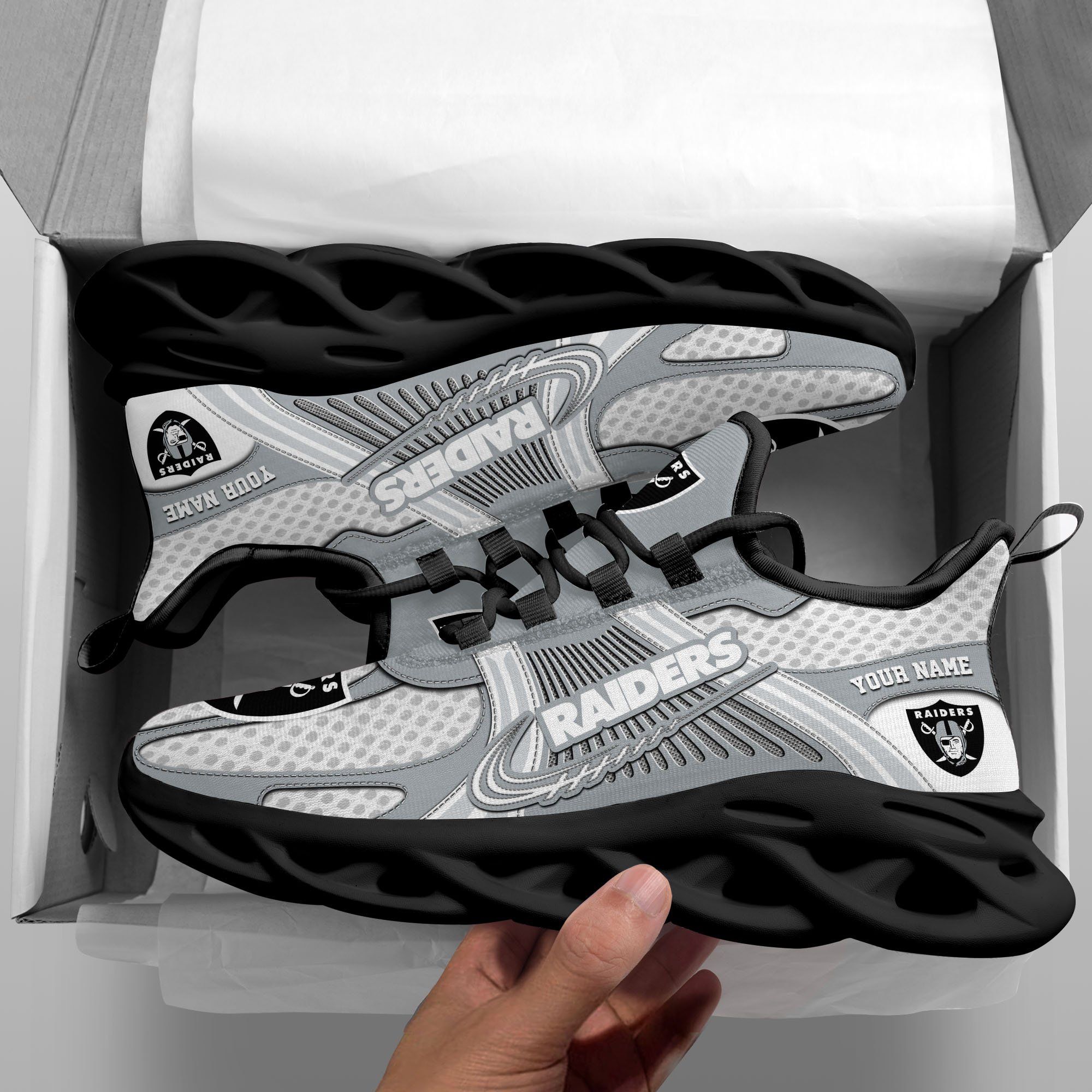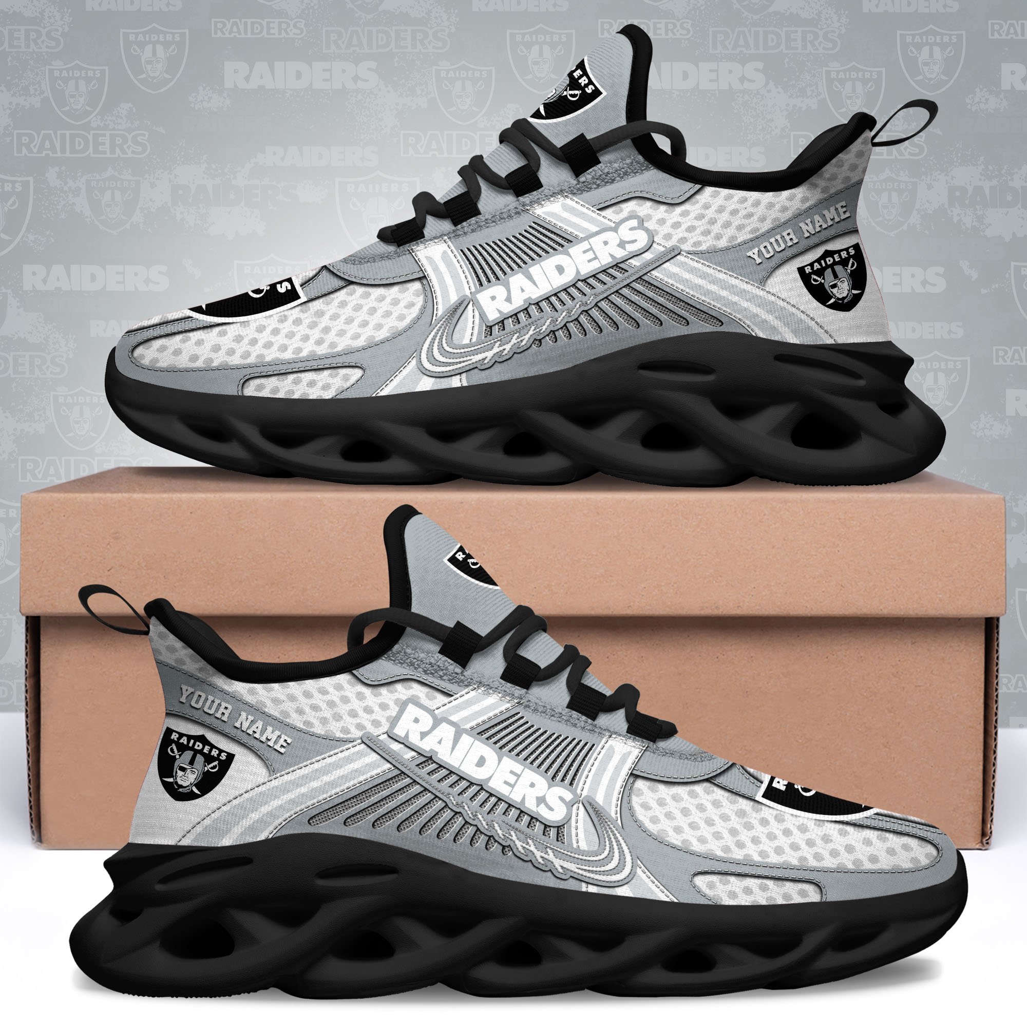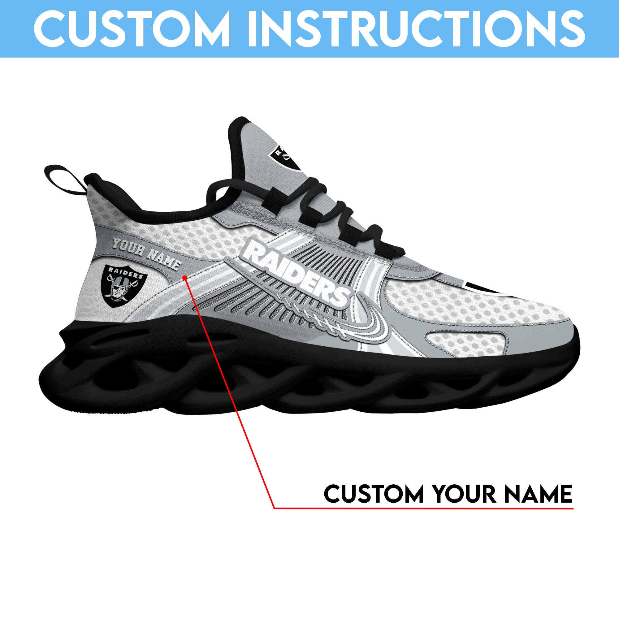 Las Vegas Raiders Clunky Sneakers Custom Your Name, Sport Sneakers For Fans, Gifts For Sport Lovers, Gift For Dad