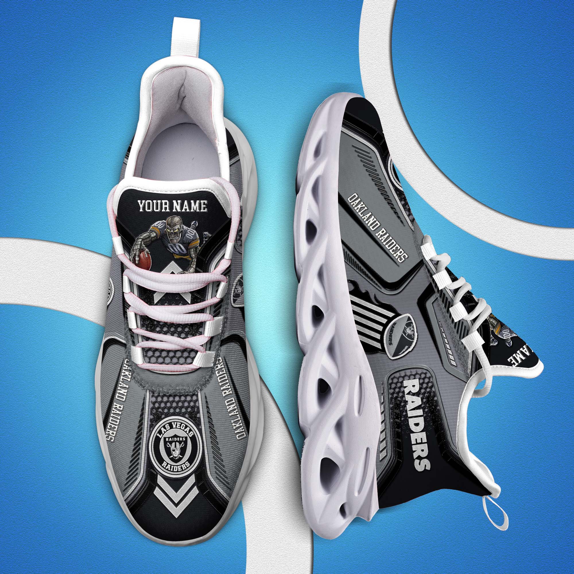 Las Vegas Raiders White C Sneakers 2026 Version Personalized Your Name, Sport Sneakers , Sport Gifts PH605