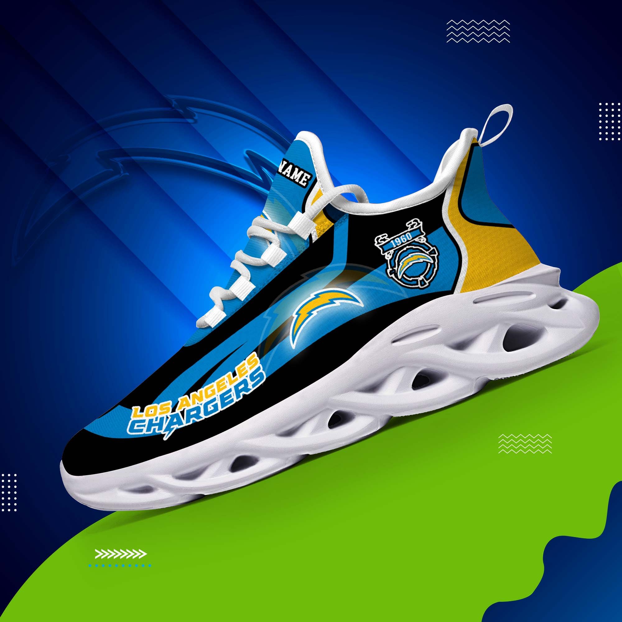 Los Angeles Chargers White C Sneakers 2026 Version Personalized Your Name 090
