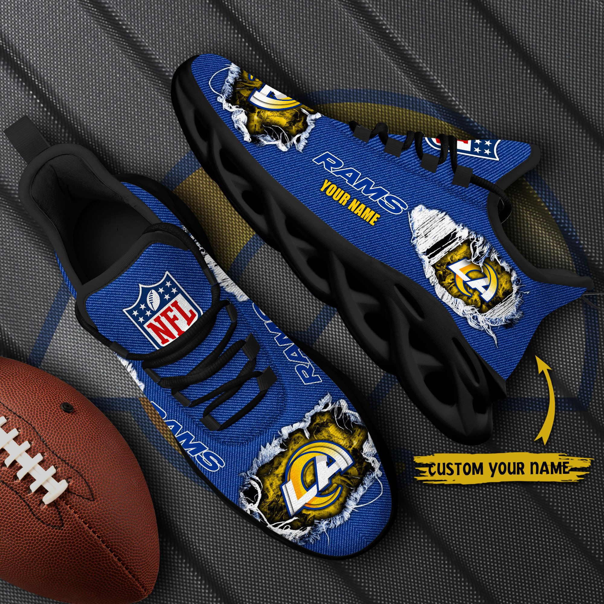 Los Angeles Rams Black Max Soul Shoes 2026 Versions Custom Name 554