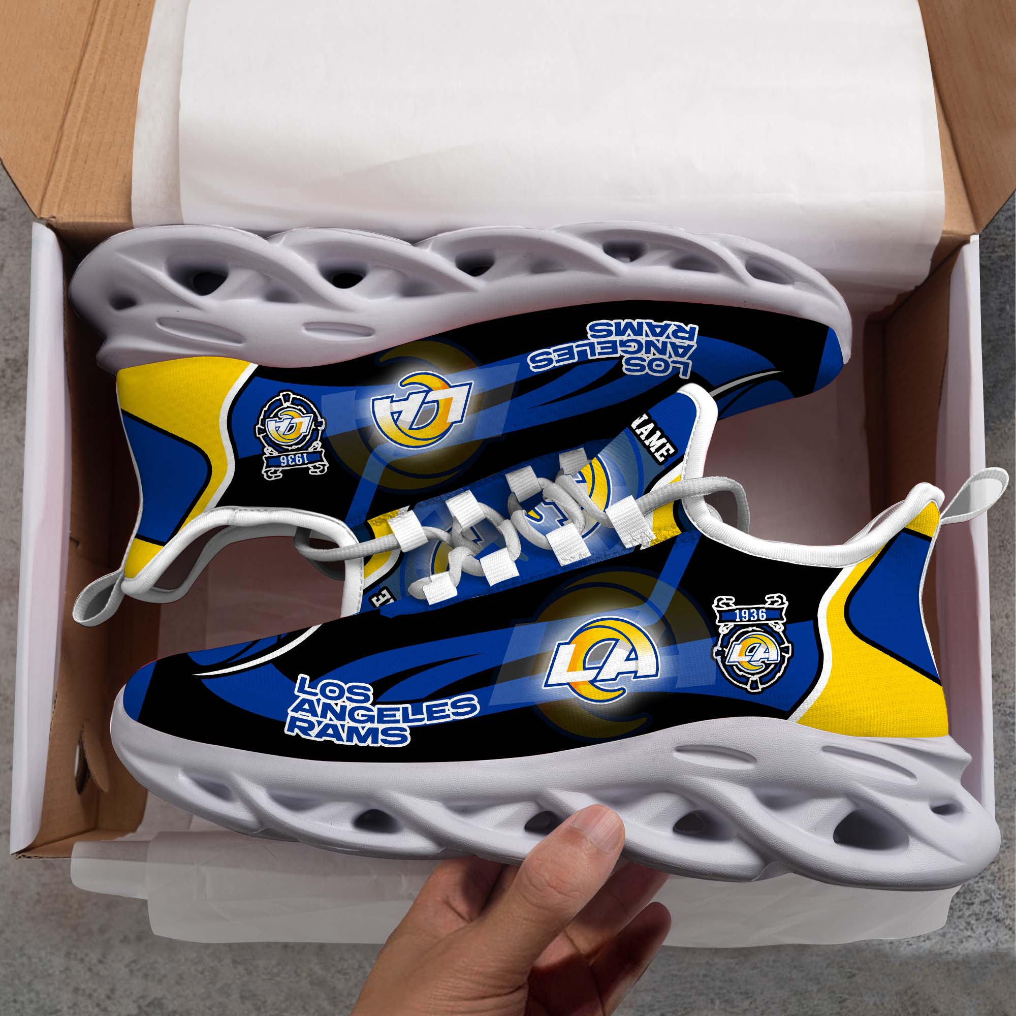 Los Angeles Rams White C Sneakers 2026 Version Personalized Your Name 090