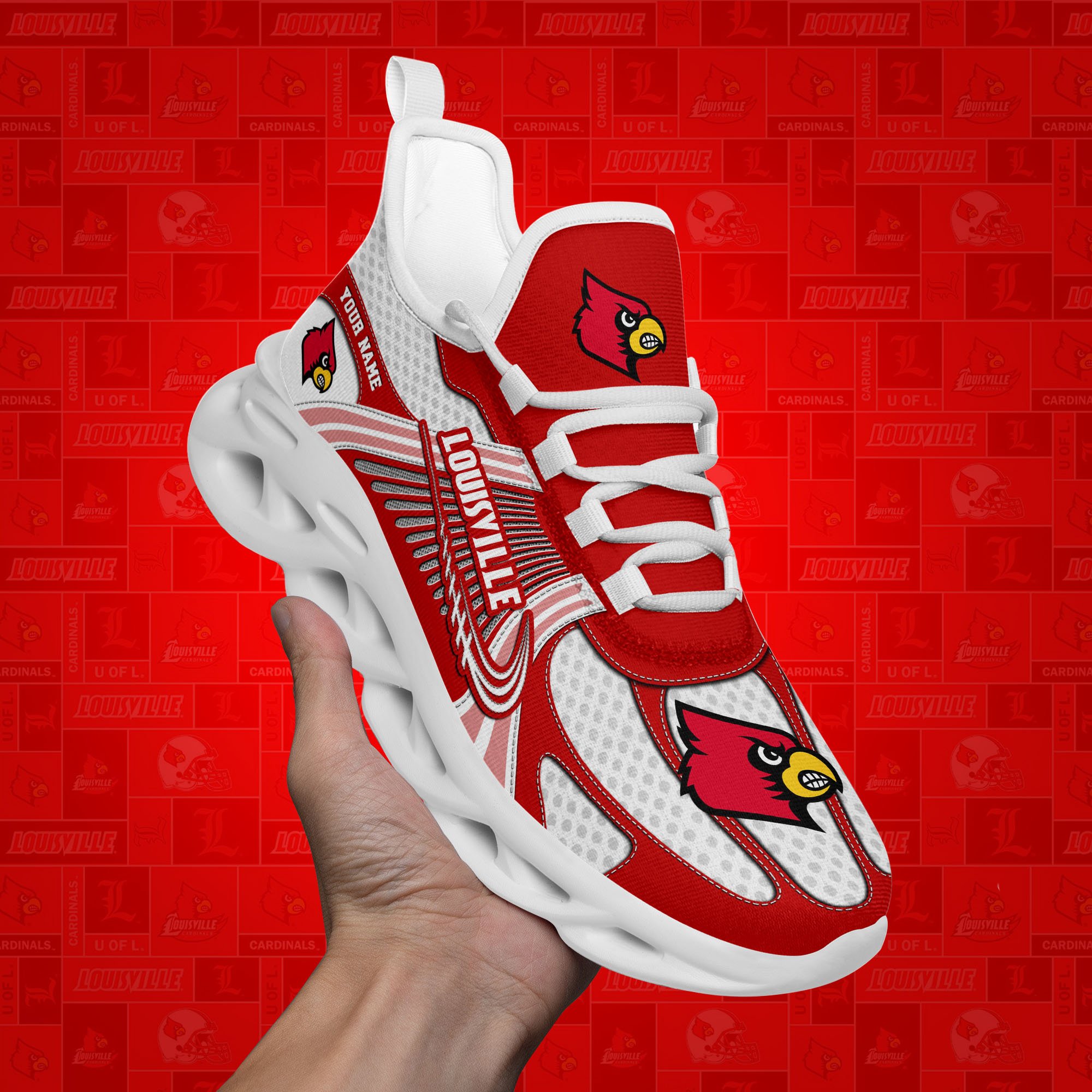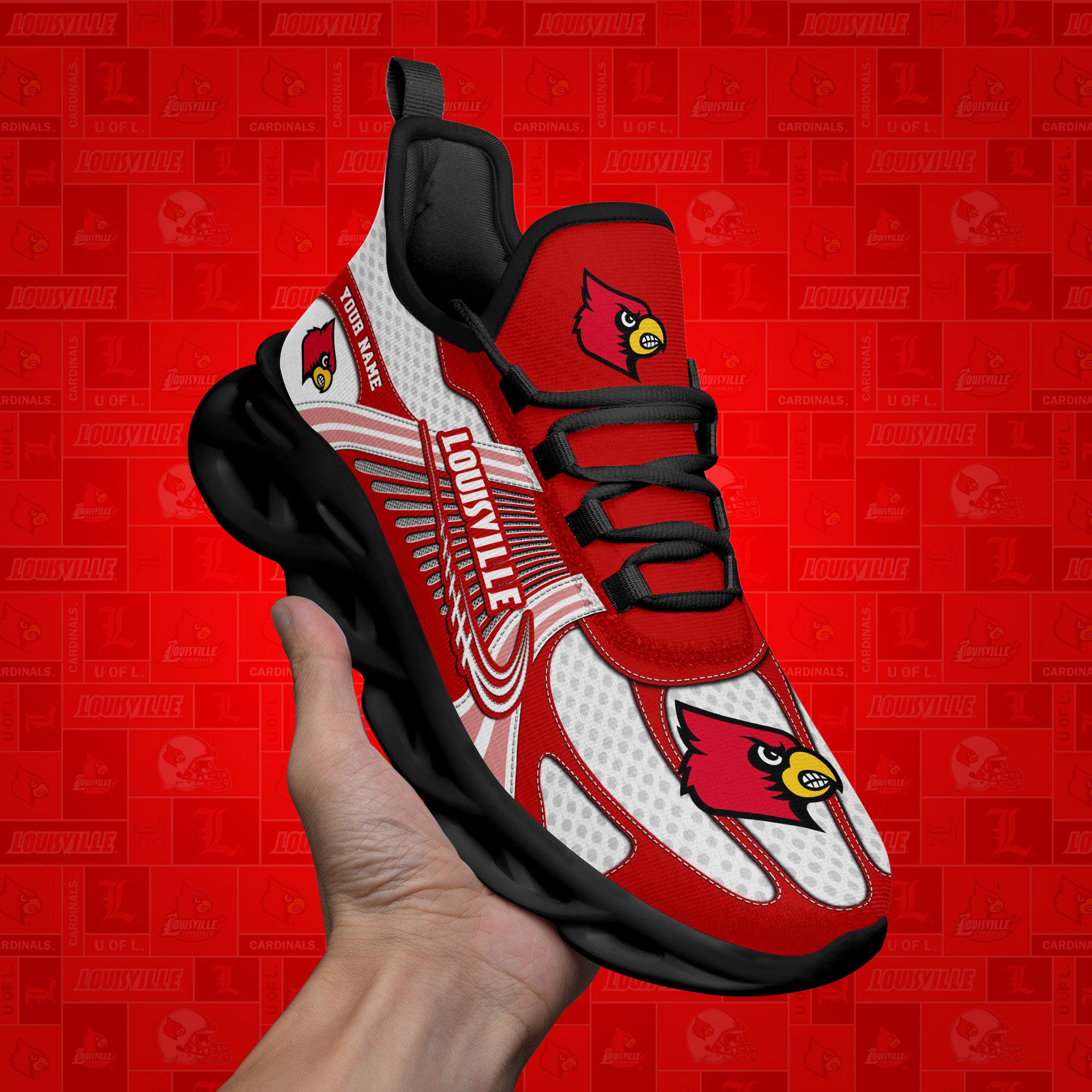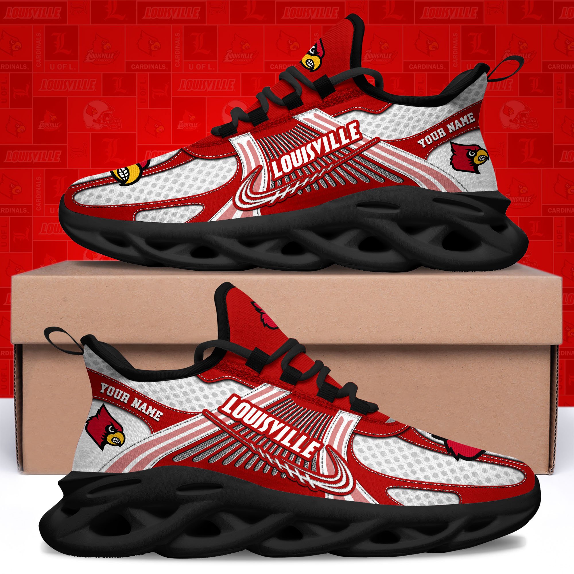 Louisville Cardinals Clunky Sneakers Custom Your Name, Sport Sneakers, Sport Gifts For Fan, Gifts For Him