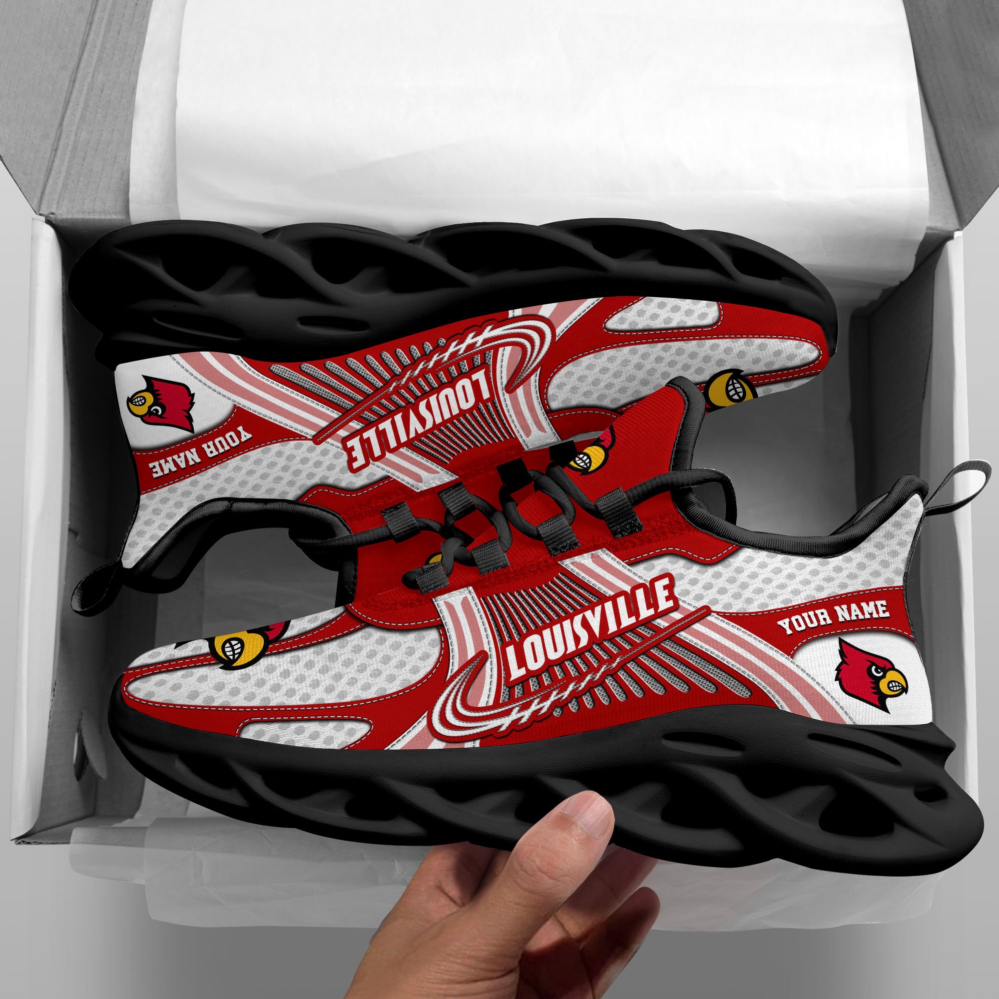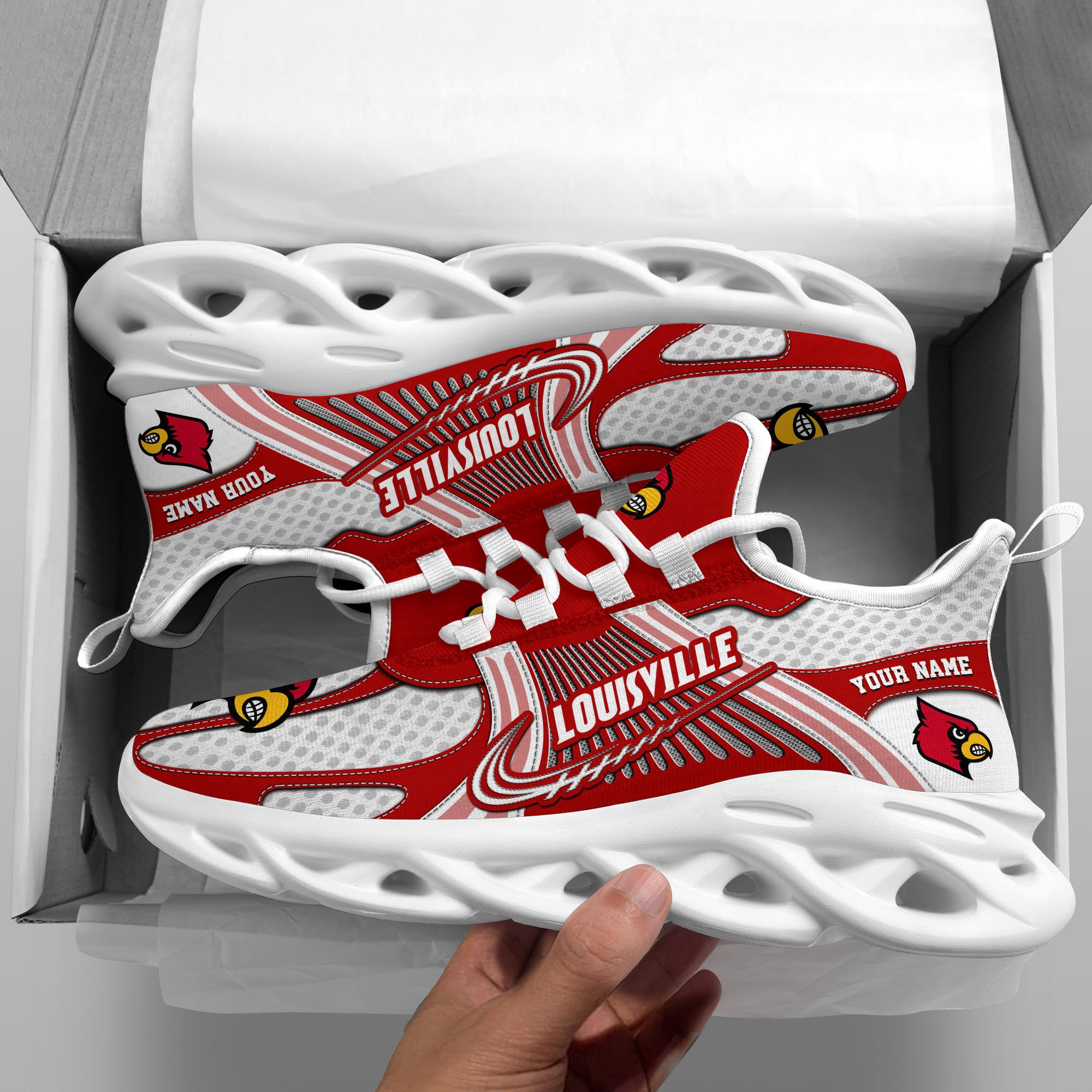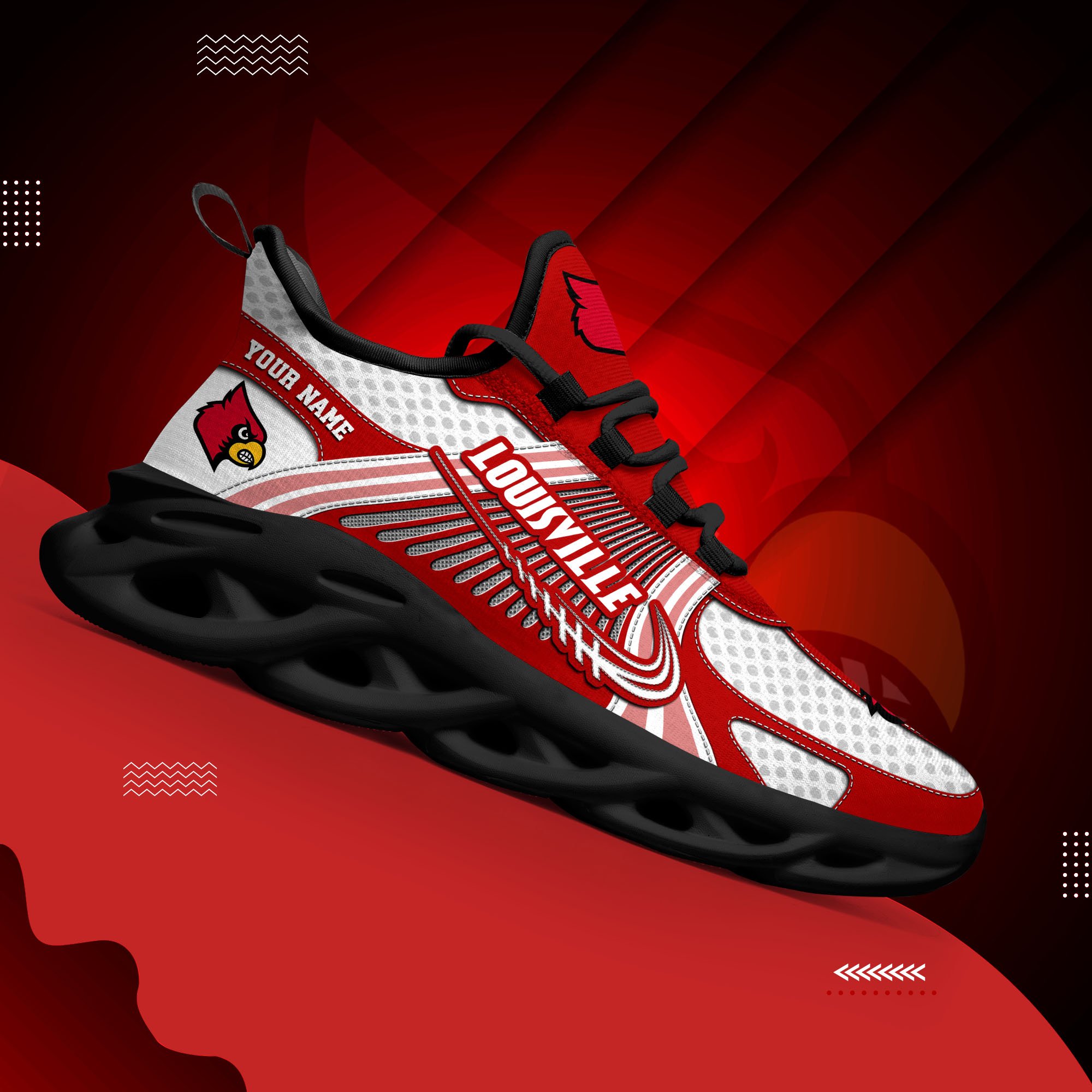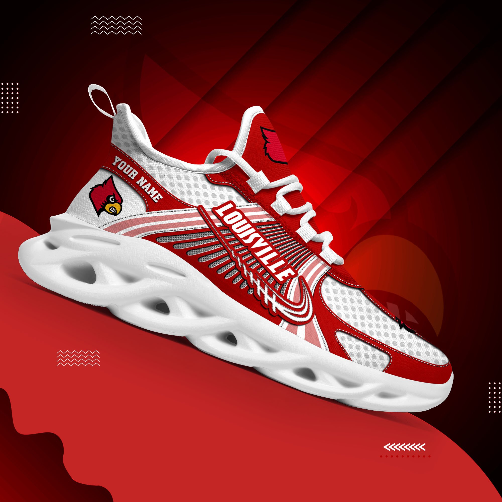 Louisville Cardinals Clunky Sneakers Custom Your Name, Sport Sneakers, Sport Gifts For Fan, Gifts For Him