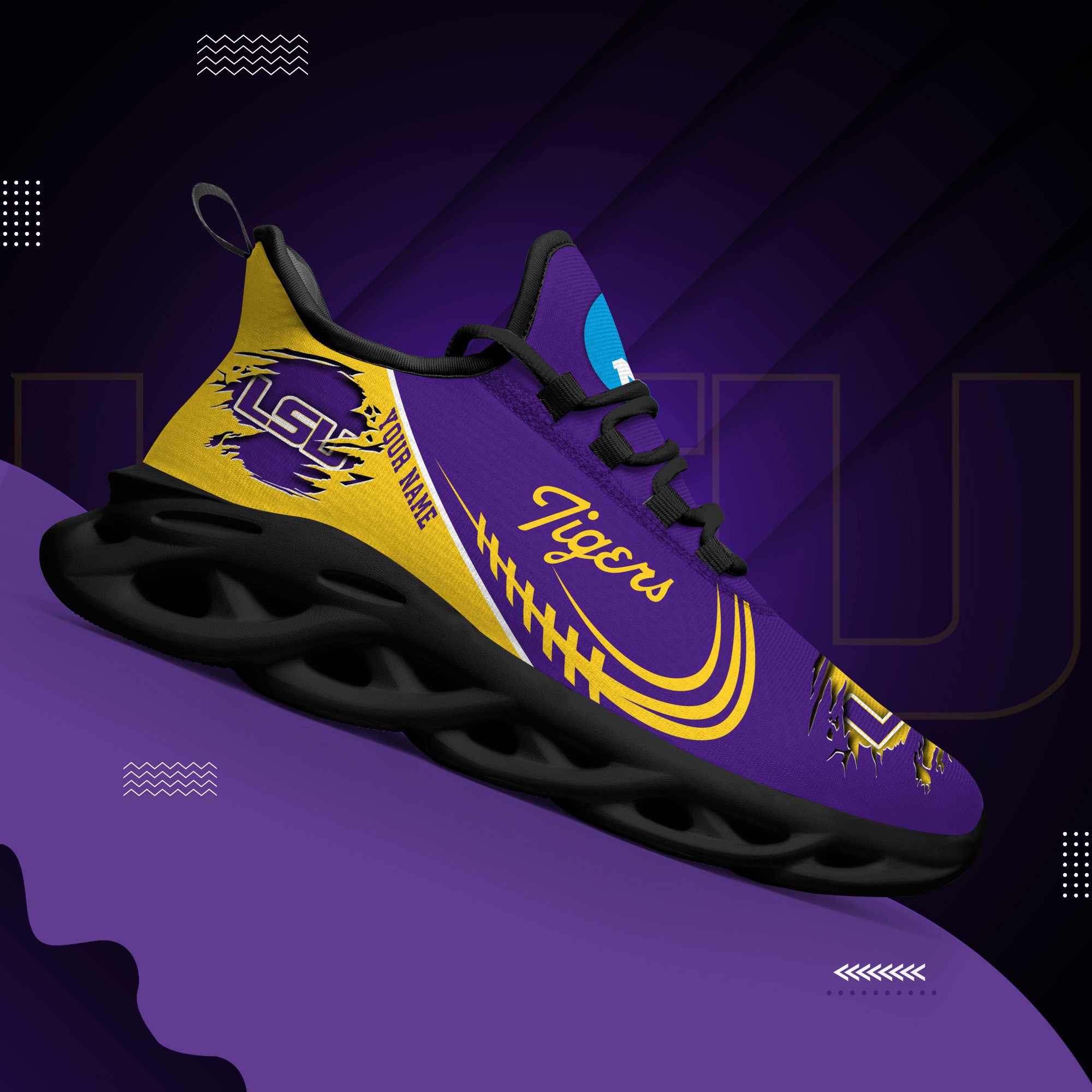 LSU TIGERS Black Max Soul Shoes 2026 Versions Custom Name 016