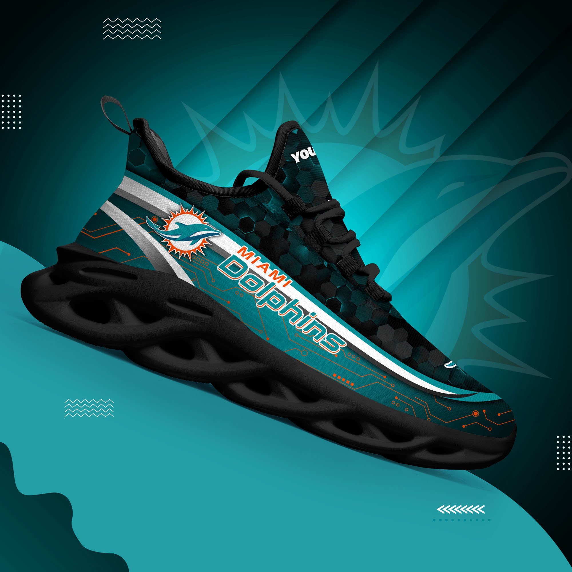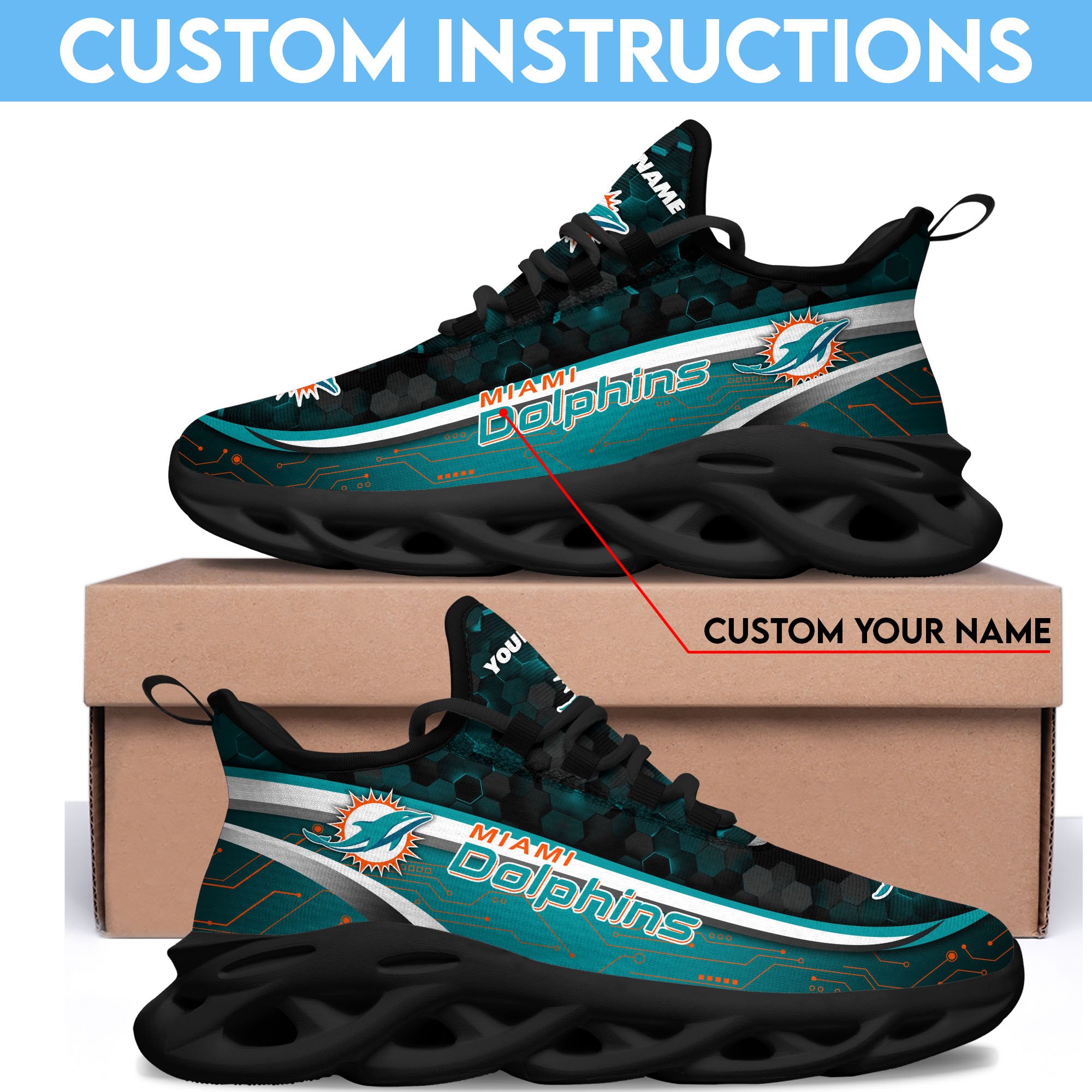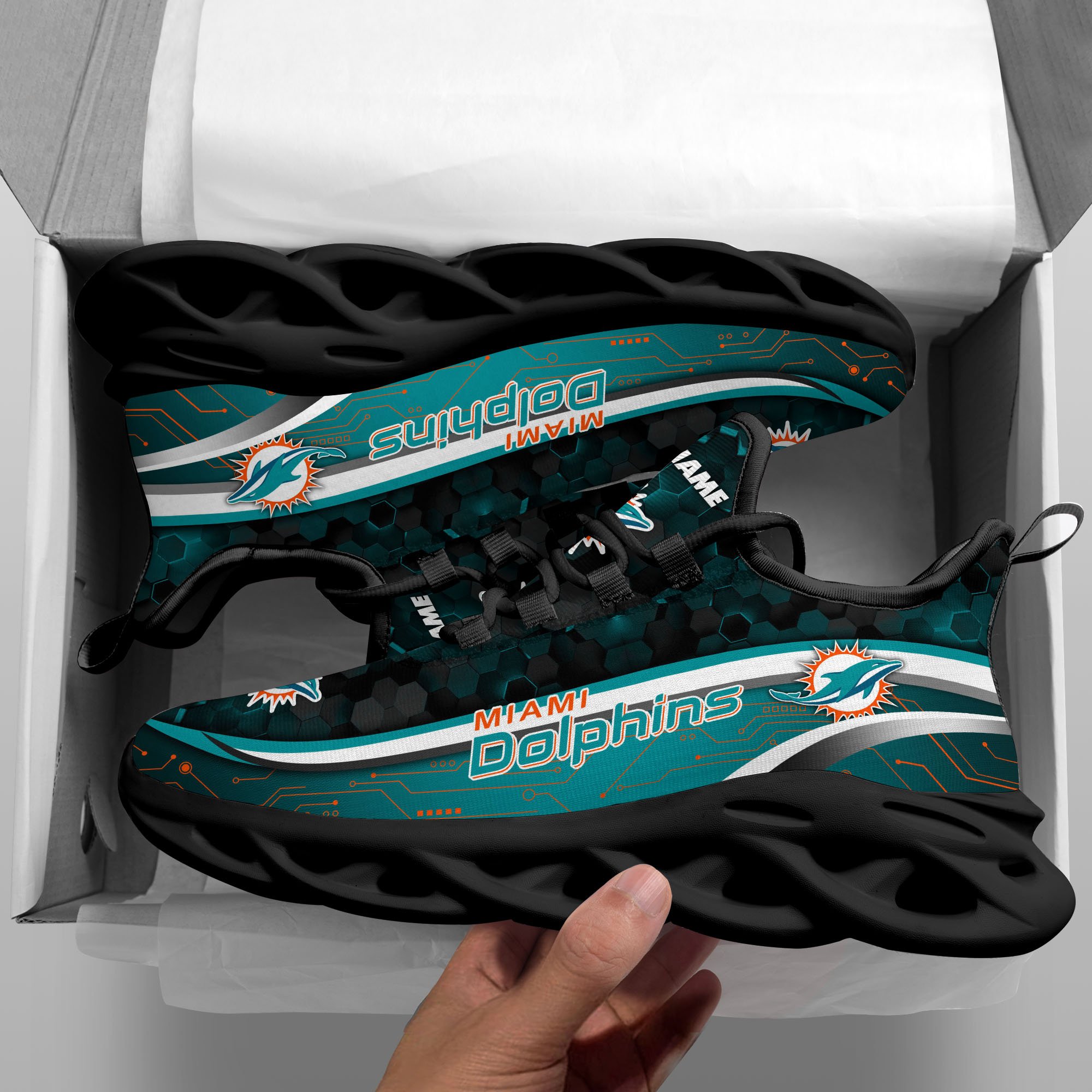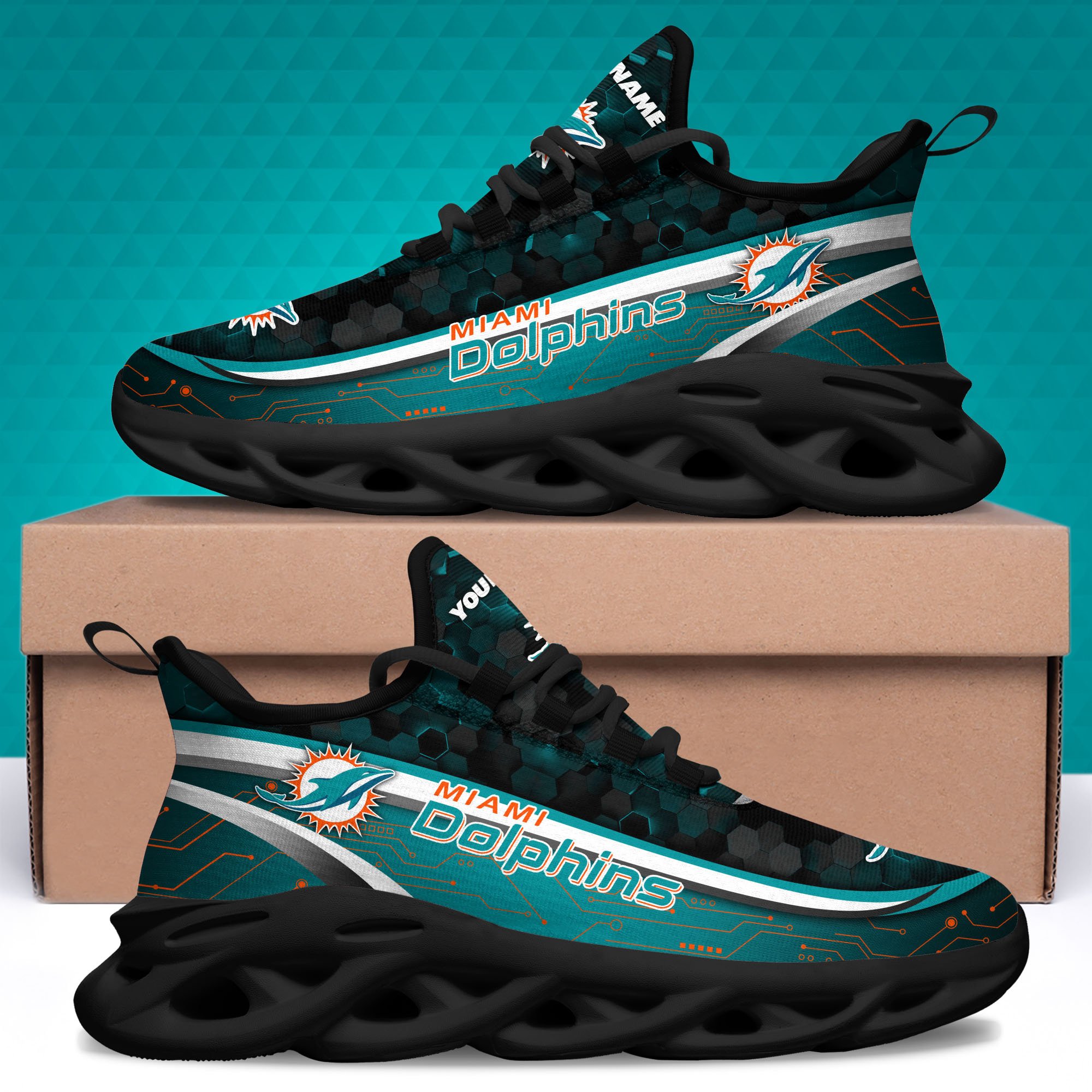 Miami Dolphins Black Clunky Sneakers Custom Name, Max Soul Shoes, Sport Gifts