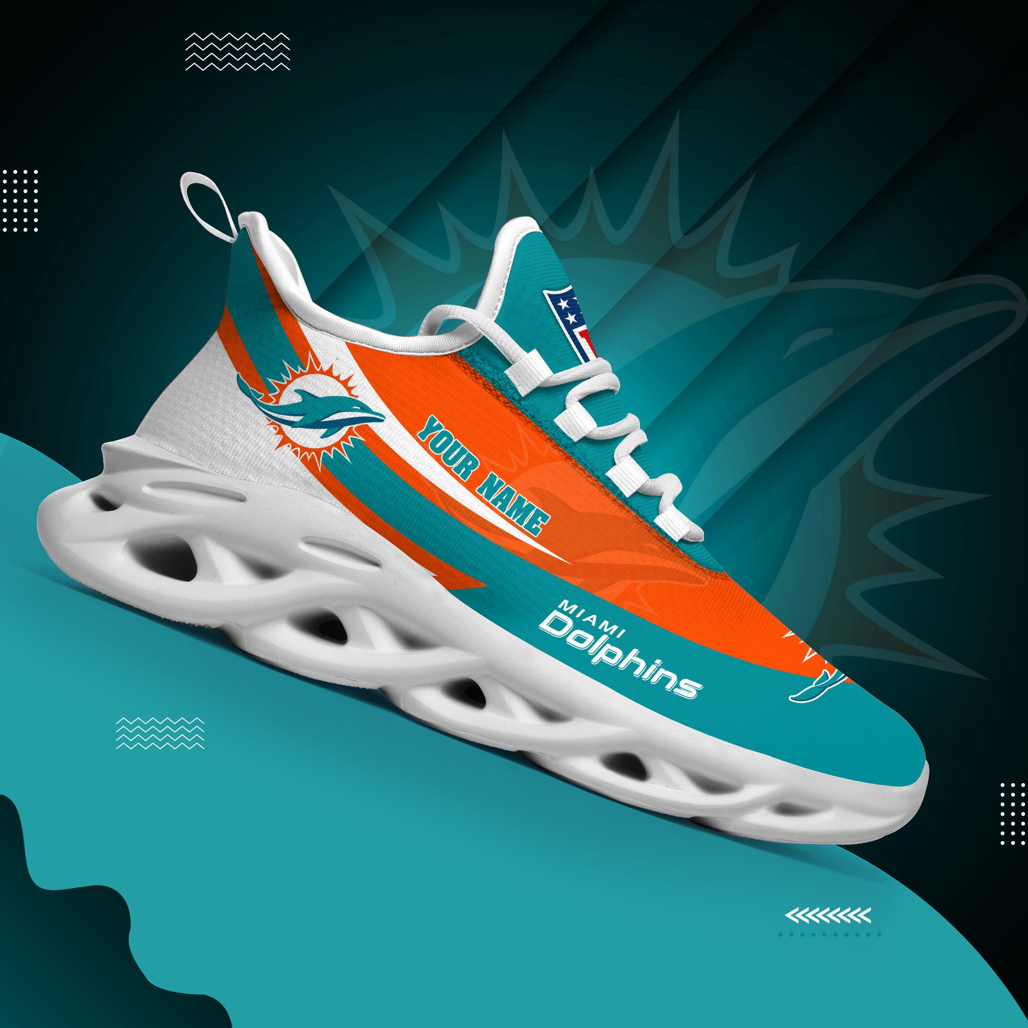 Miami Dolphins White Max Soul Shoes 2026 Versions Custom Your Name, Sports Gift For Fan, Sport Gifts PH410