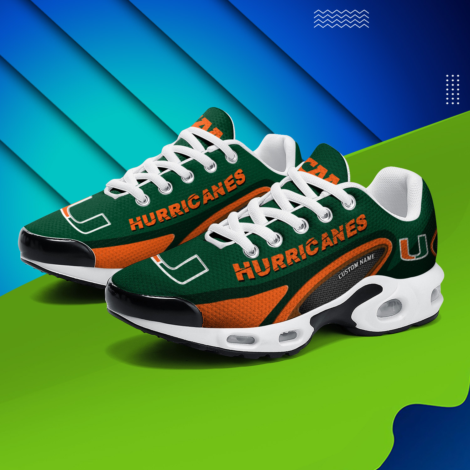 Miami Hurricanes Personalized Name Team Logo Mix Colors Oval Line TN Air Max Shoes Air Cushion Sneakers