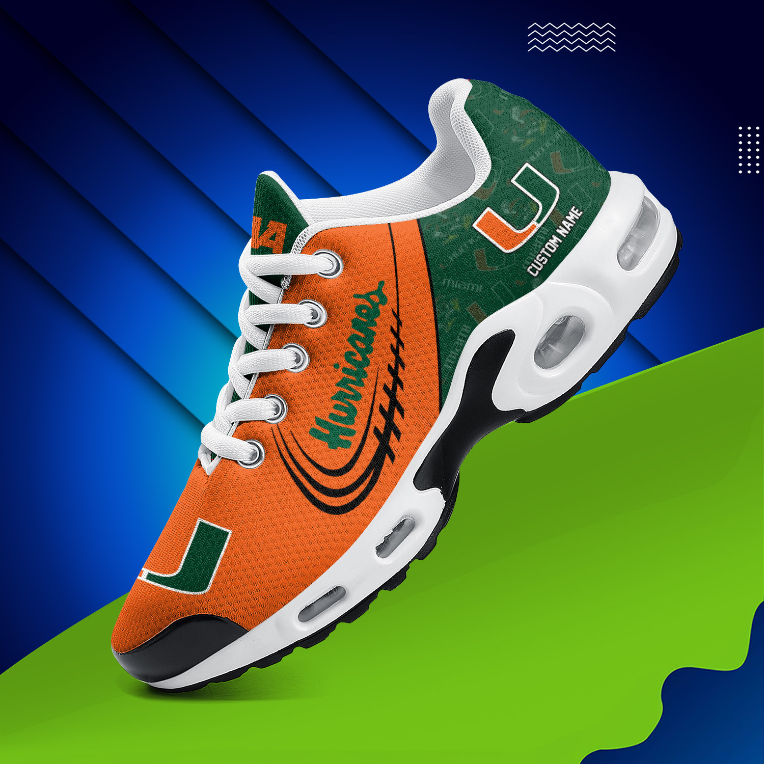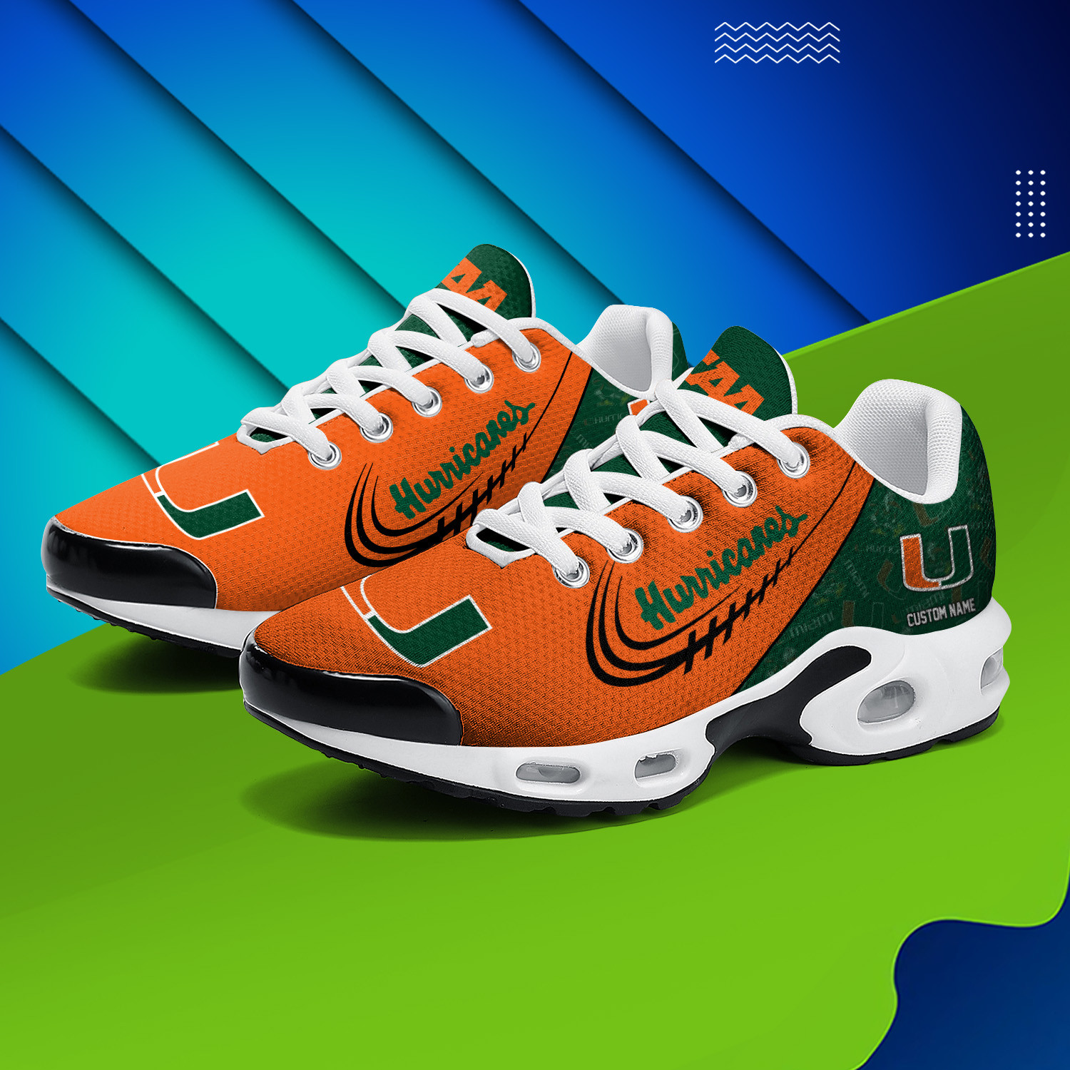 Miami Hurricanes Personalized Name Team Logo Mix Colors Stitch Line TN Air Max Shoes Air Cushion Sneakers