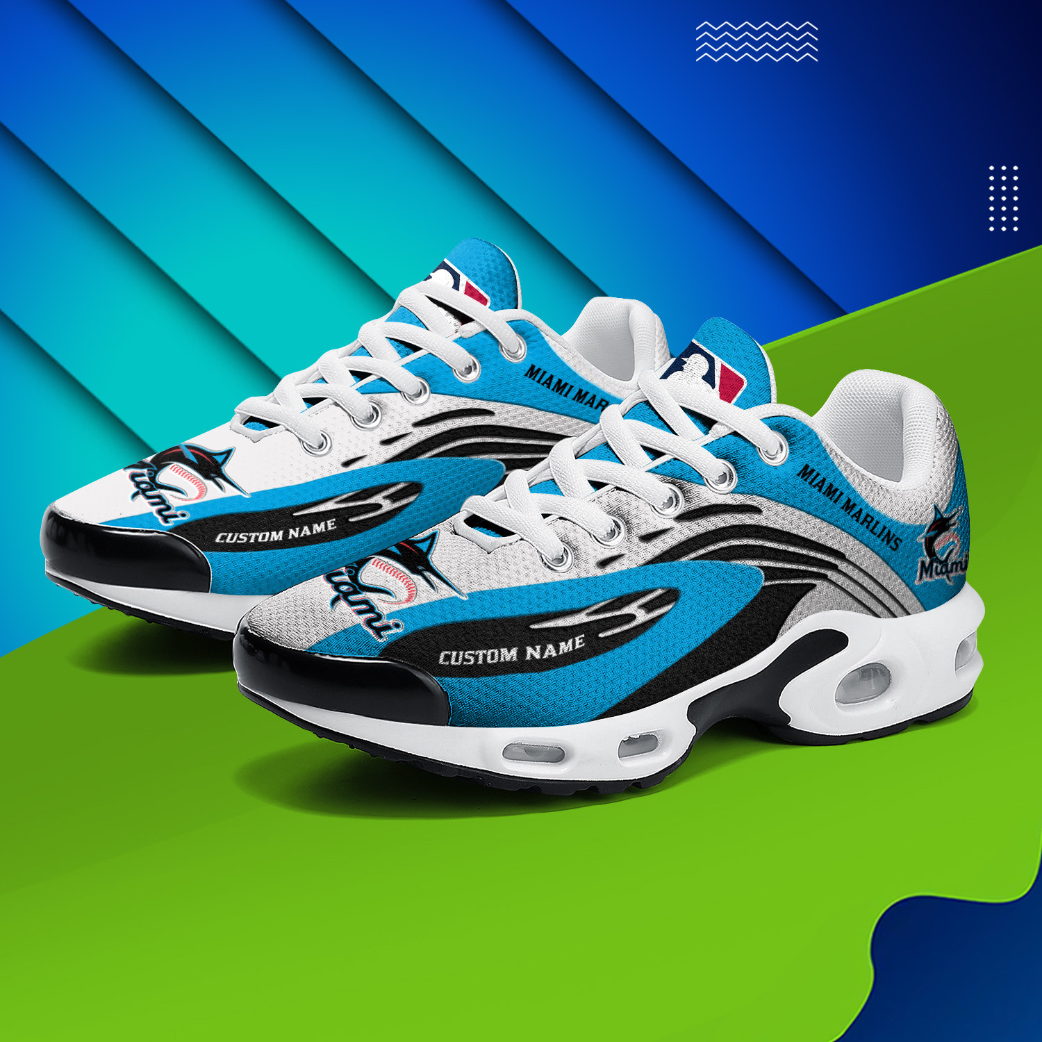 Miami Marlins Personalized Name Team Logo Mix Colors Wave Line TN Shoes Air Cushion Sneakers