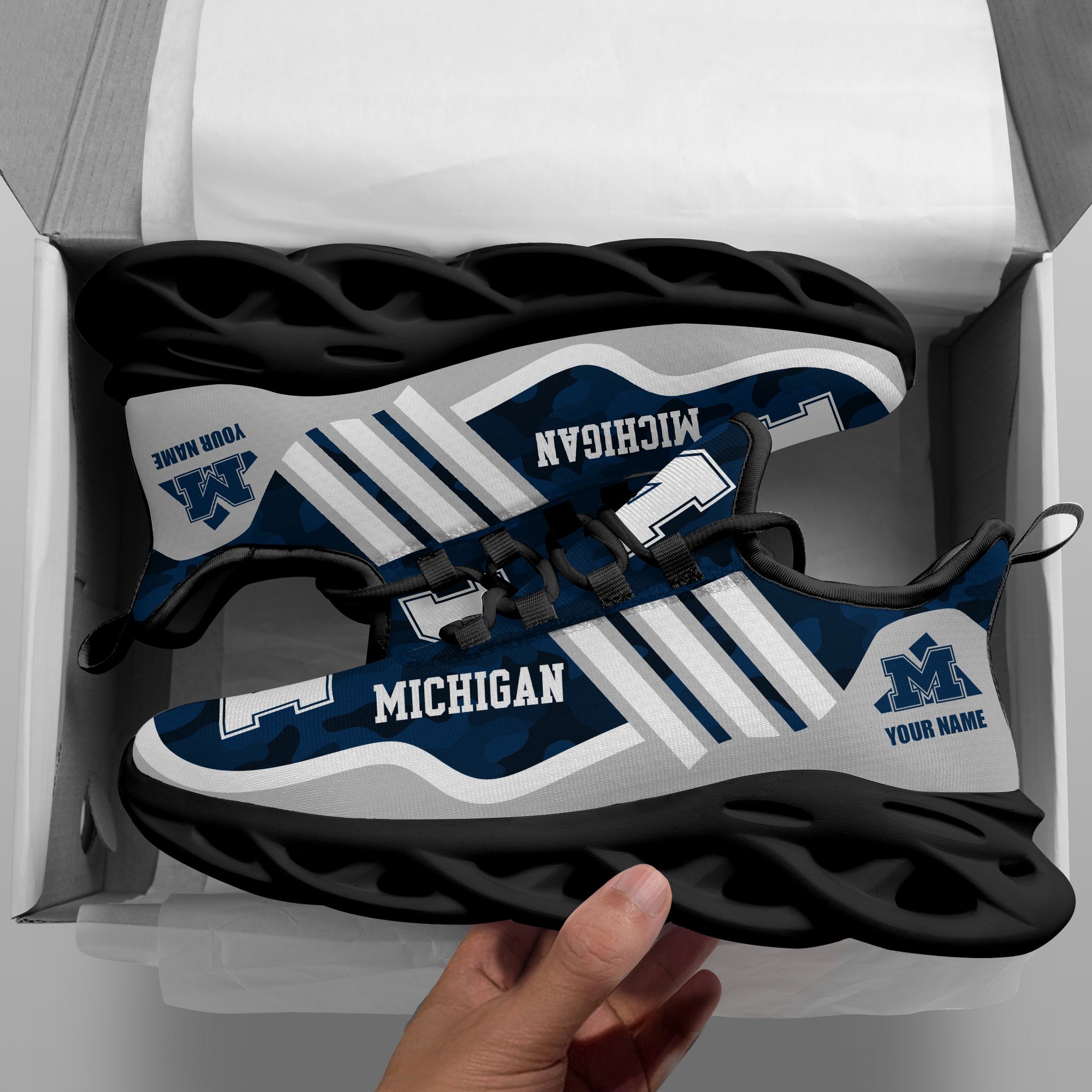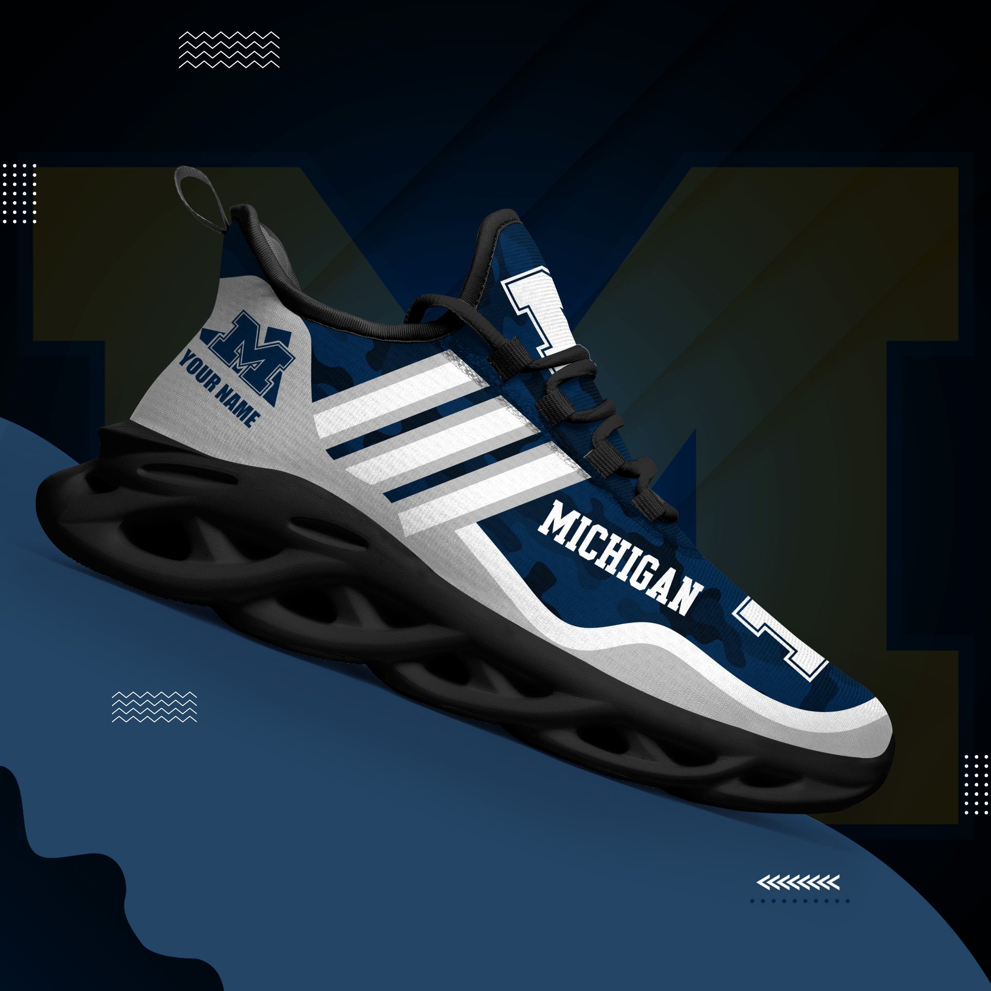 Michigan Wolverines Black Max Soul Shoes 2026 Versions Custom Name 466