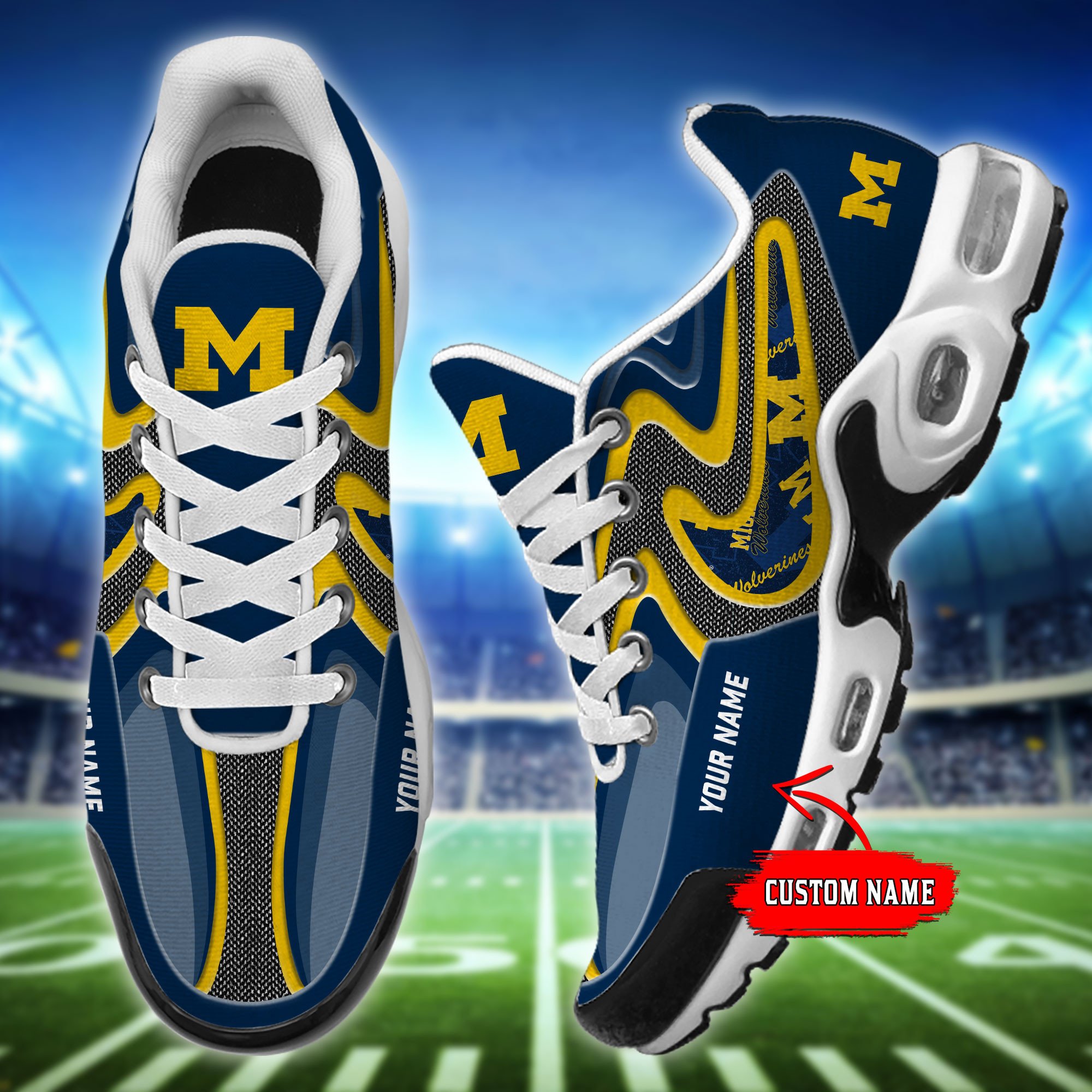 Michigan Wolverines Personalized Name Team Checkmark Logo Mix Colors Stitch Line TN Shoes Air Cushion Sneakers
