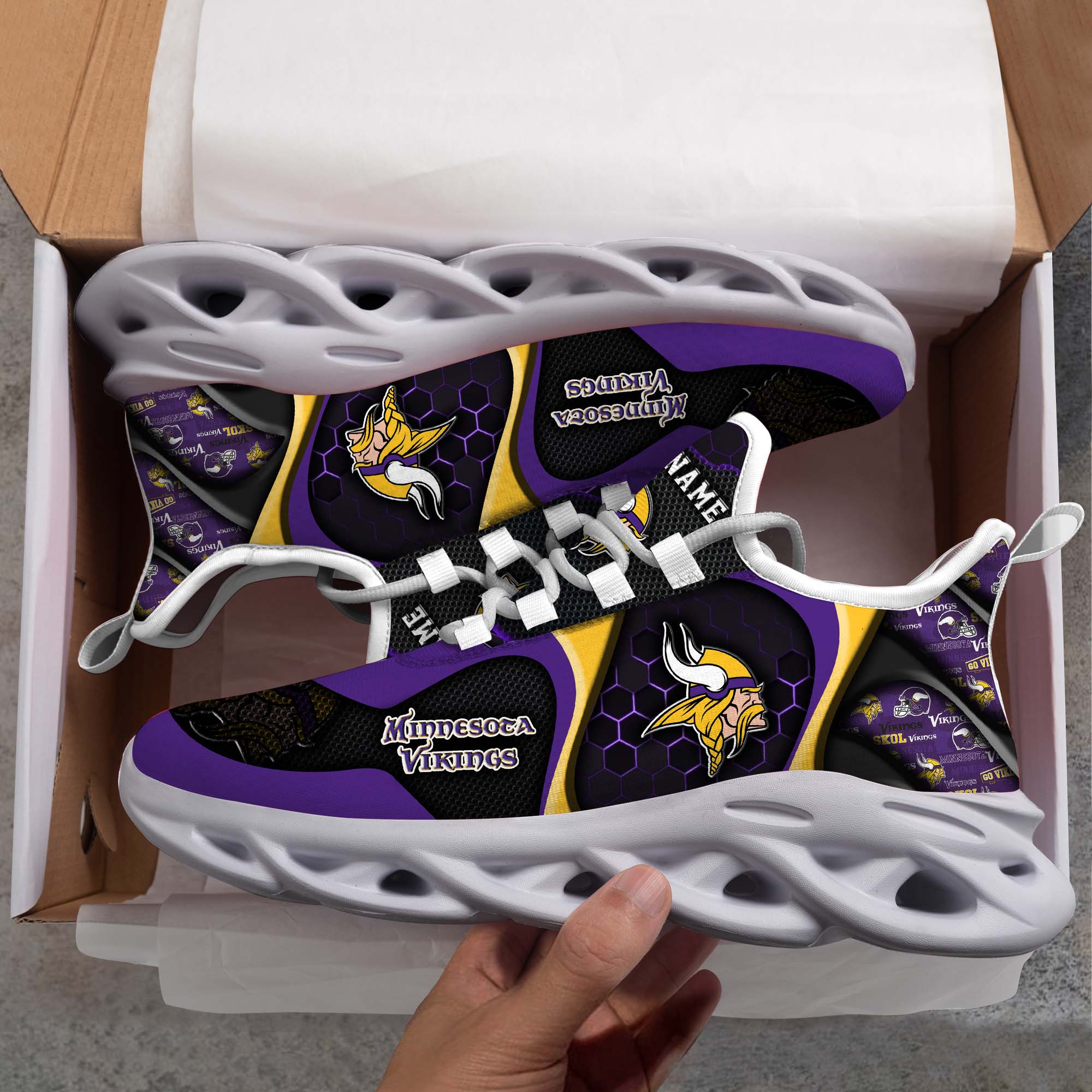 Minnesota Vikings White C Sneakers 2026 Version Personalized Your Name 432