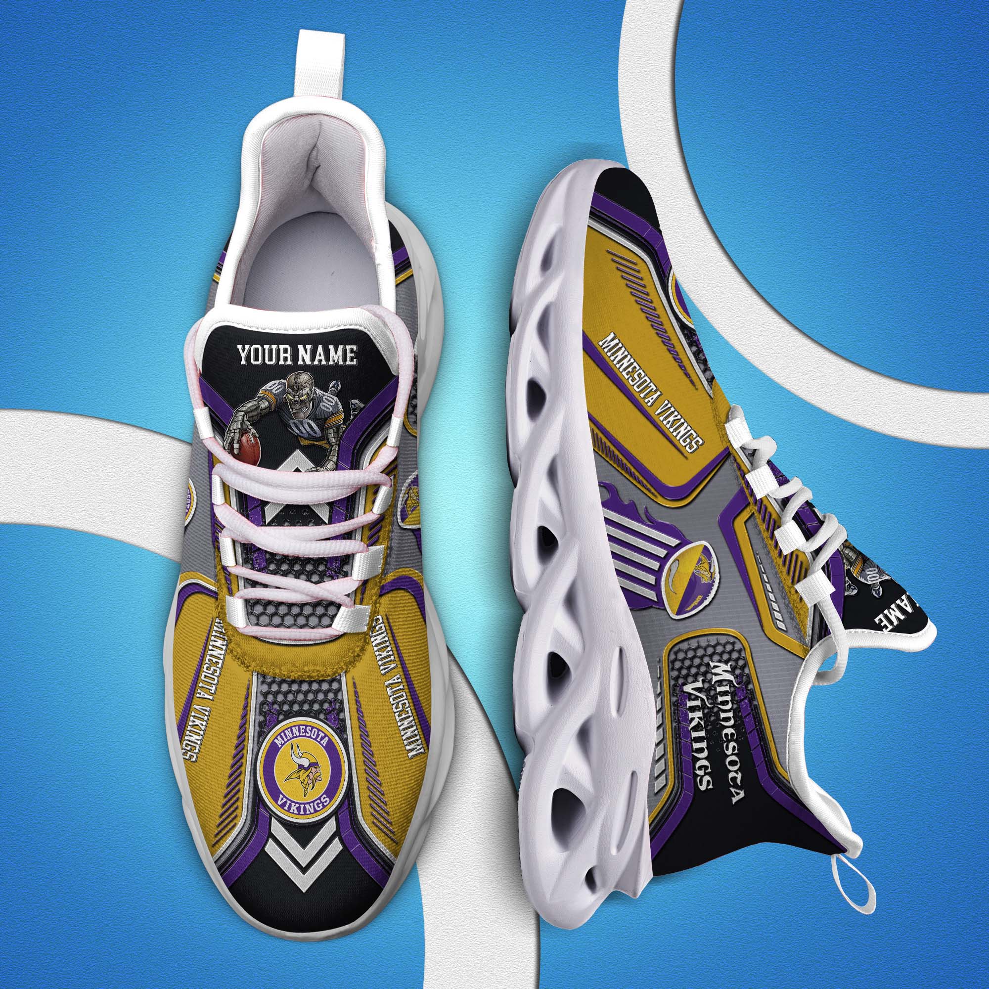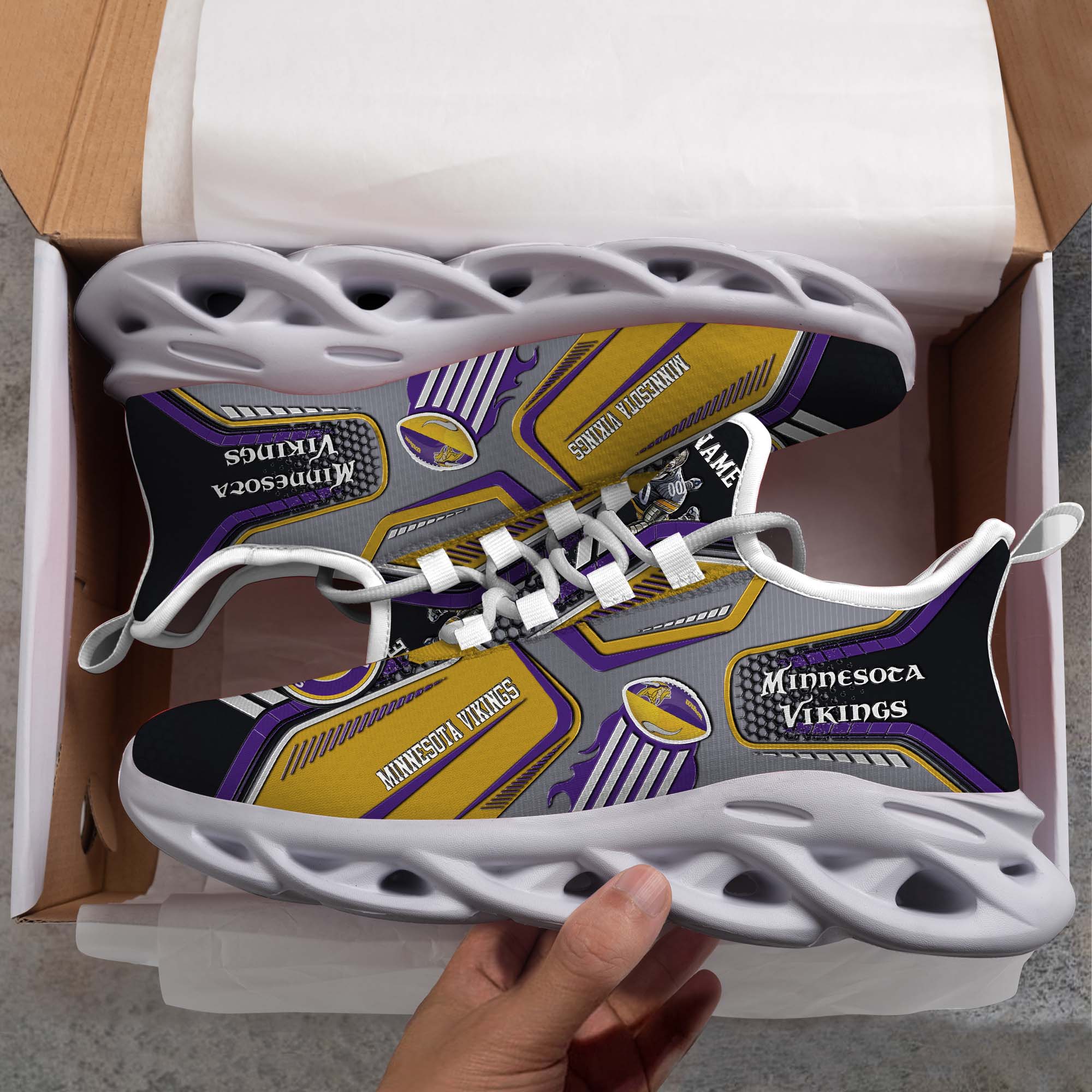 Minnesota Vikings White C Sneakers 2026 Version Personalized Your Name, Sport Sneakers , Sport Gifts PH605