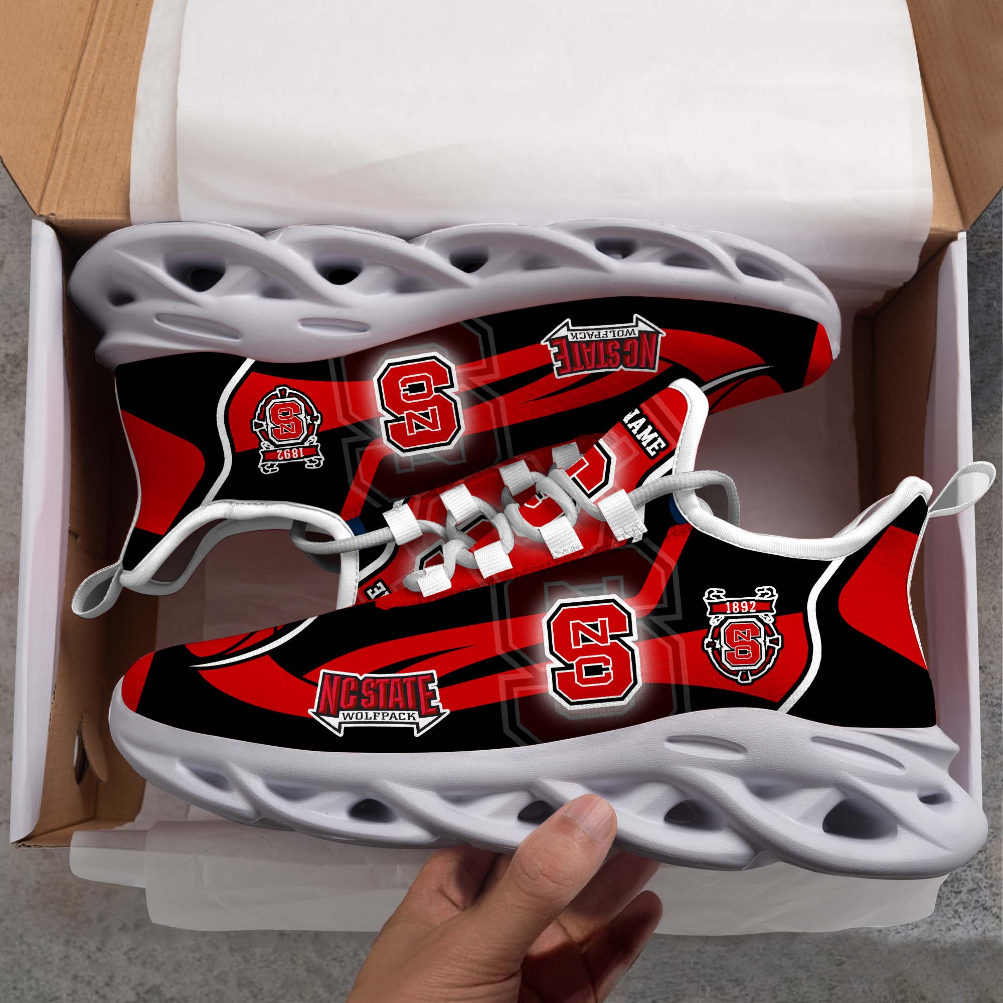 NC State Wolfpack White C Sneakers 2026 Version Personalized Your Name 090